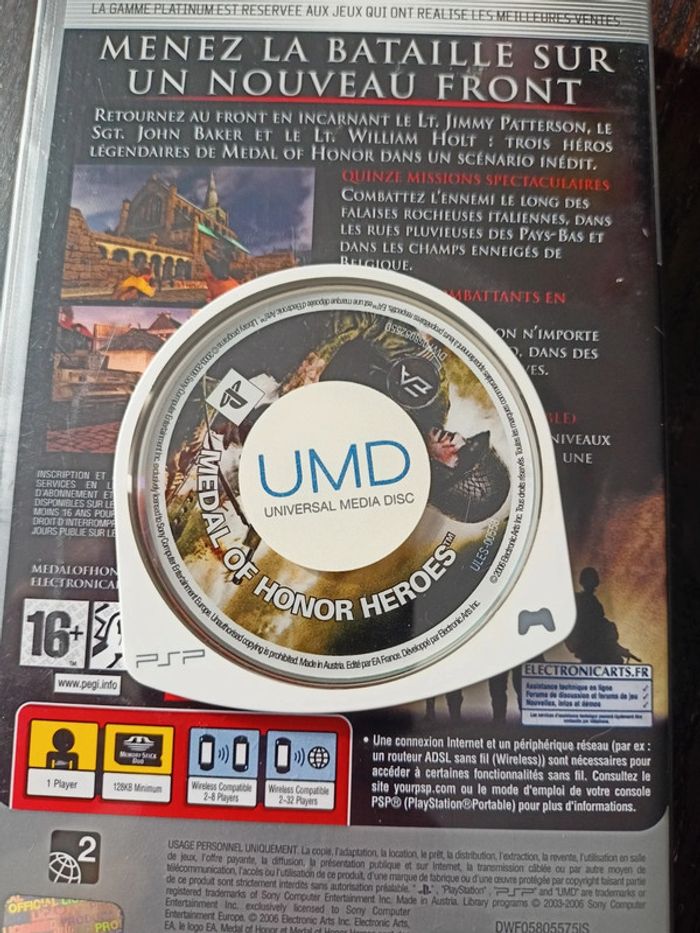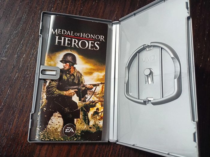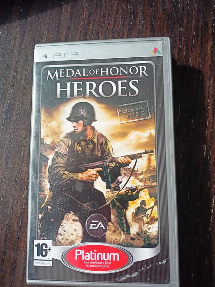 Jeu psp medal of honor- Heroes en très bon état, juste la jacquette qui possède quelques traces de colle (?!), jeu en très bon état, et de fonctionnement 😊. Édition Platinum.