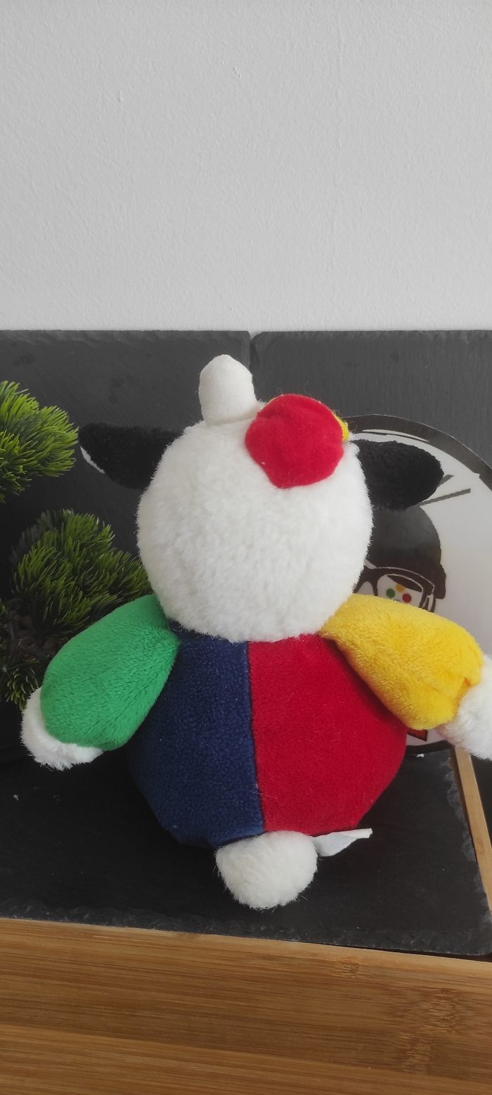 peluche vache zncienne blanc noir casquette bleu rouge vet jaune bouton - photo numéro 2