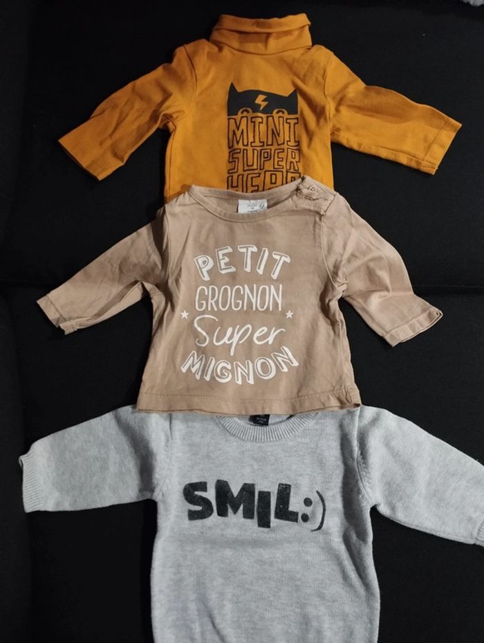 Lot de 3 hauts manches longues 1 mois - photo numéro 7