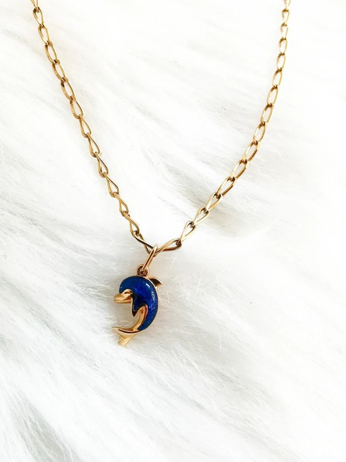 Collier dauphin bleu et doré 🖤 - photo numéro 1