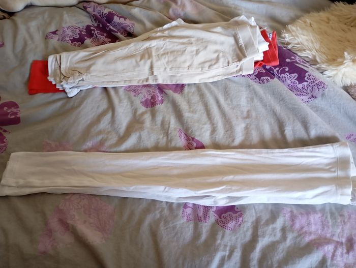 Lot de 6 leggings fille 10 ans 5 courts corsaire 1 beige 3 blancs 1 corail marque influx La halle Kiabi le beige et un blanc a des petits noeuds voir photo 1 blanc long Kiabi Tous 10 ans très bon état Bcp d'autres habits fille 10 ans autres annonces
