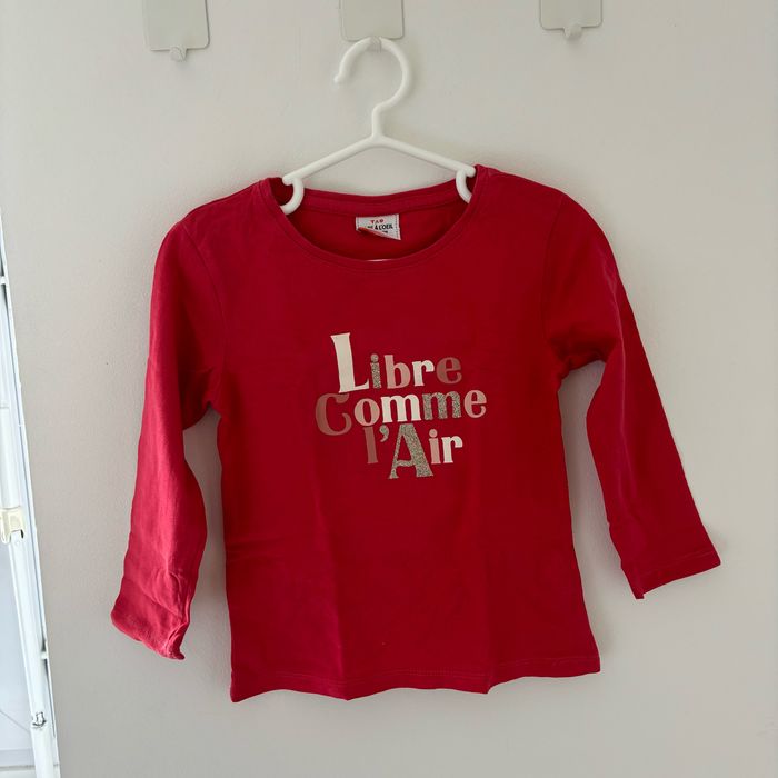 Tee-shirt rouge avec inscription « Libre Comme l’Air ». Manches longues. 100% coton. #teeshirt #rouge #inscription #libre #coton #2ans #86cm #TapeÀl’Œil #TAO #teeshirt #red #registration #free #cotton #2years #teeshirt #rossa #registrazione #gratuita #cotone #2anni #teeshirt #vermelho #matrícula #grátis #algodão #2anos #camiseta #roja #inscripción #gratis #algodón #2años #teeshirt #rood #registratie #gratis #katoen #2jaar