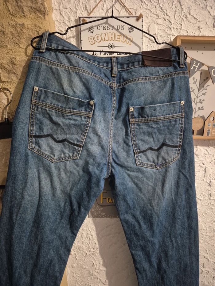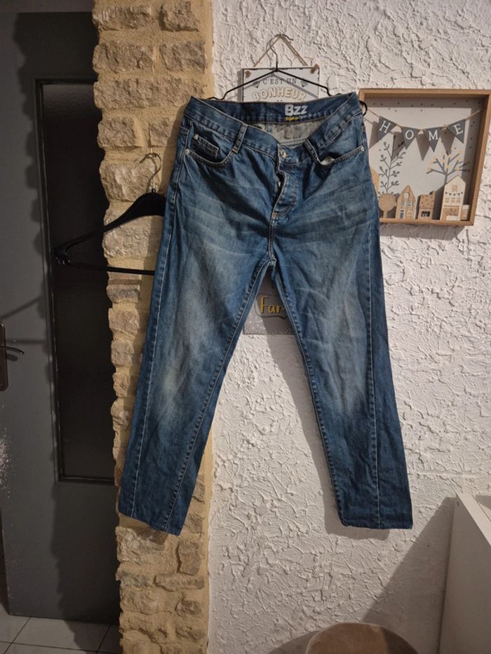 Jean effet vieilli avec bordures décalées bizzbee taille 42 - photo numéro 1