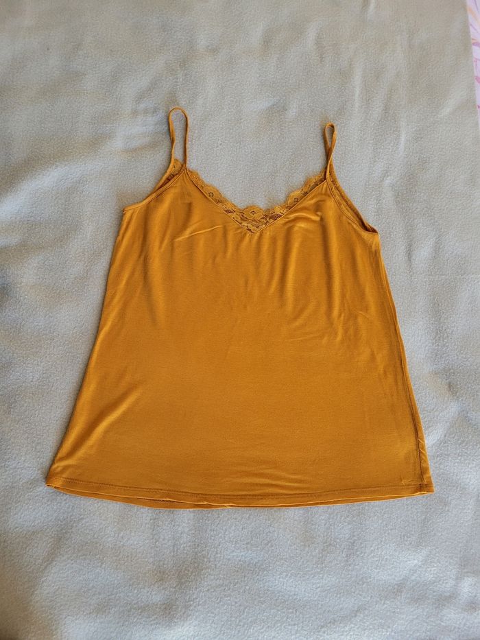 Débardeur L Couleur moutarde En très bon état, hormis 2 minuscule tâches sur l'avant Absence d'étiquette