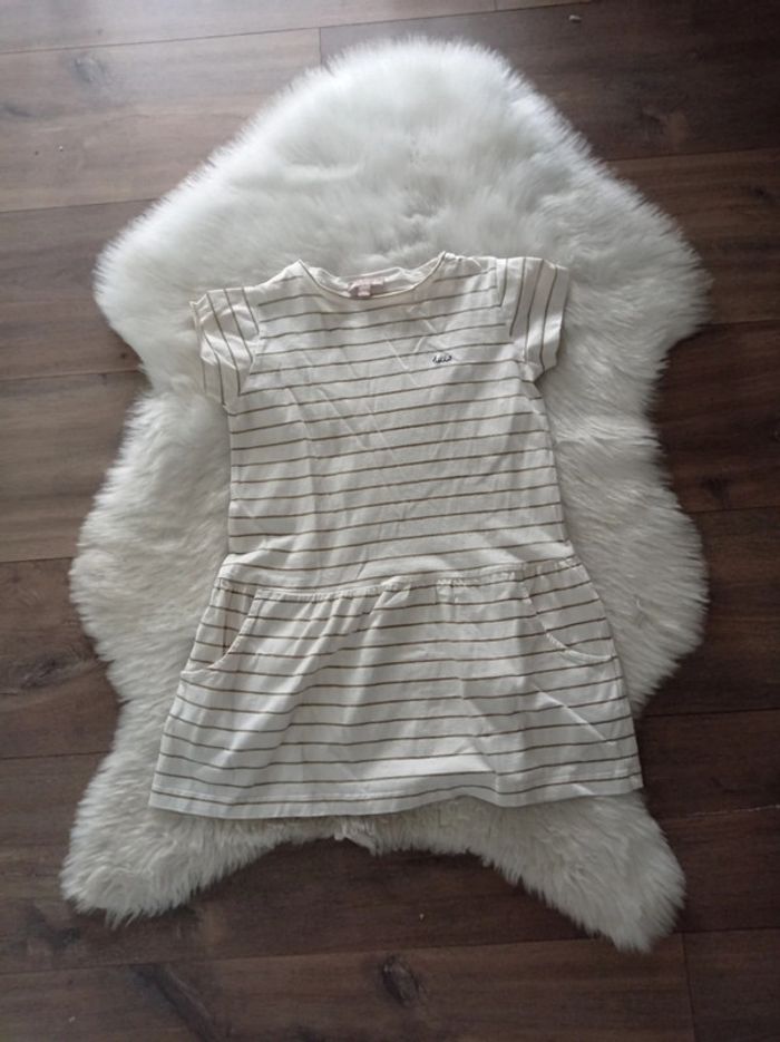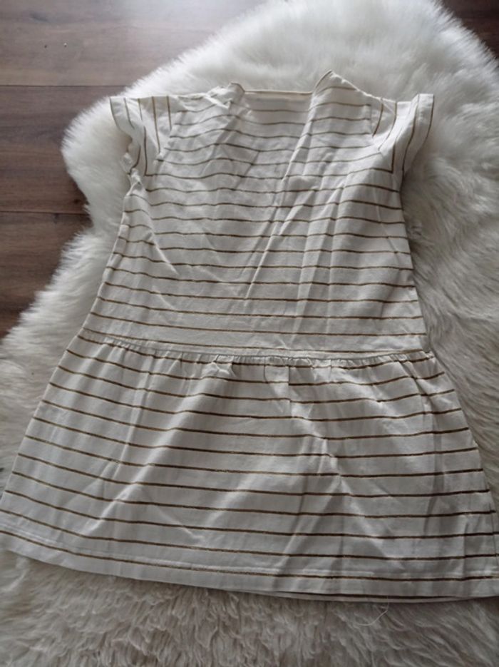 Robe chic idéal cérémonie mariage baptême communion anniversaire Matière t-shirt rayure doré Petite trace très légère je l'ai vu uniquement en prenant la photo ne se voit qu a la lumière #emileetida #izianaquatreans