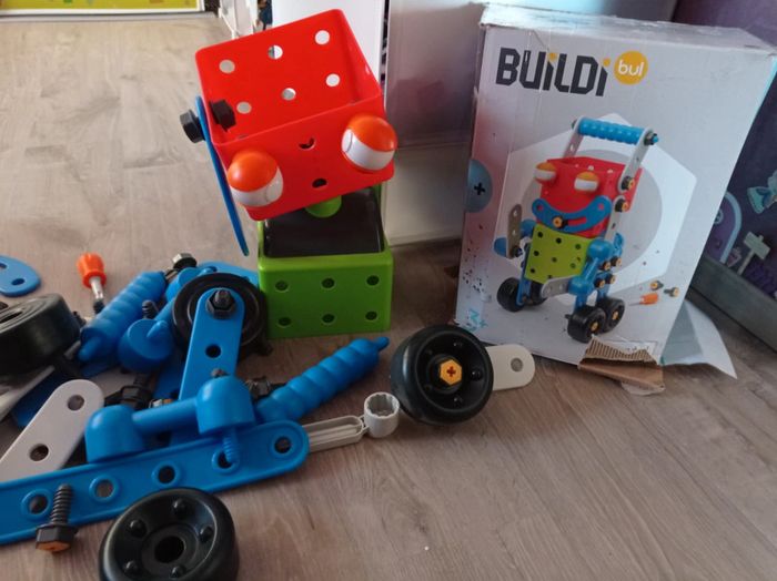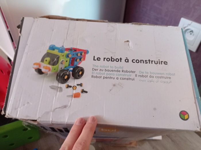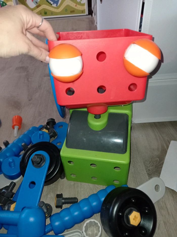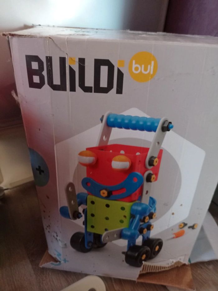 Dans boîte d origine acheté sur Oxybul il est complet ! laisse beaucoup de possibilités Valeur neuf 50€ Ce robot build it géant est un jeu de construction composé d environ 80 pièces. L'enfant assemble ces grandes pièces pour construire un des modèles présentés, cela peut être un camion, un caddie, un chien... Il peut aussi inventer d'autres créations. En manipulant les deux outils adaptés à ses petites mains, il serre les vis et les écrous. Sa construction est solide, il peut maintenant jouer avec elle en inventant des histoires. Ce robot build it est un jeu de construction qui permet à votre petit de développer à la fois son habileté et son imagination. #oxybul #izianamixte #izianadeuxans #izianatroisans #izianaquatreans