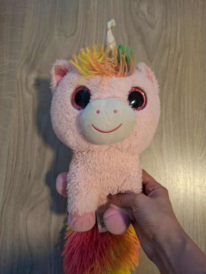 Peluche licorne enfant rose et Queue Multicolore - photo numéro 1
