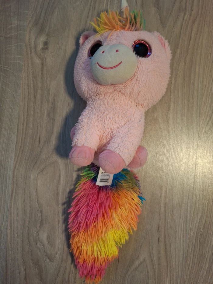 Peluche licorne enfant rose et Queue Multicolore - photo numéro 5