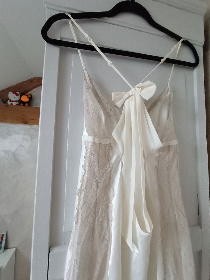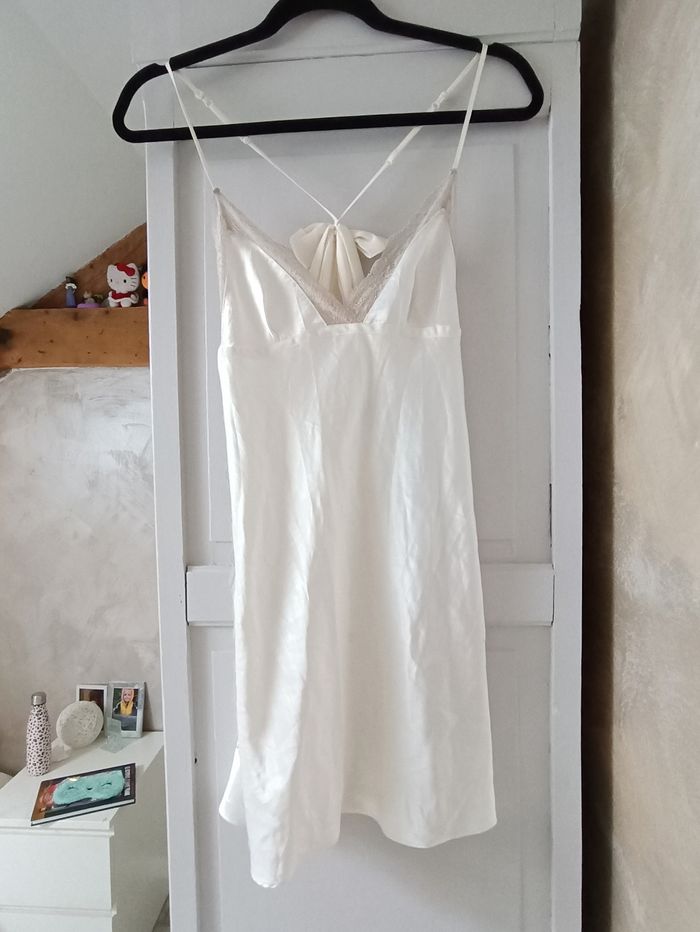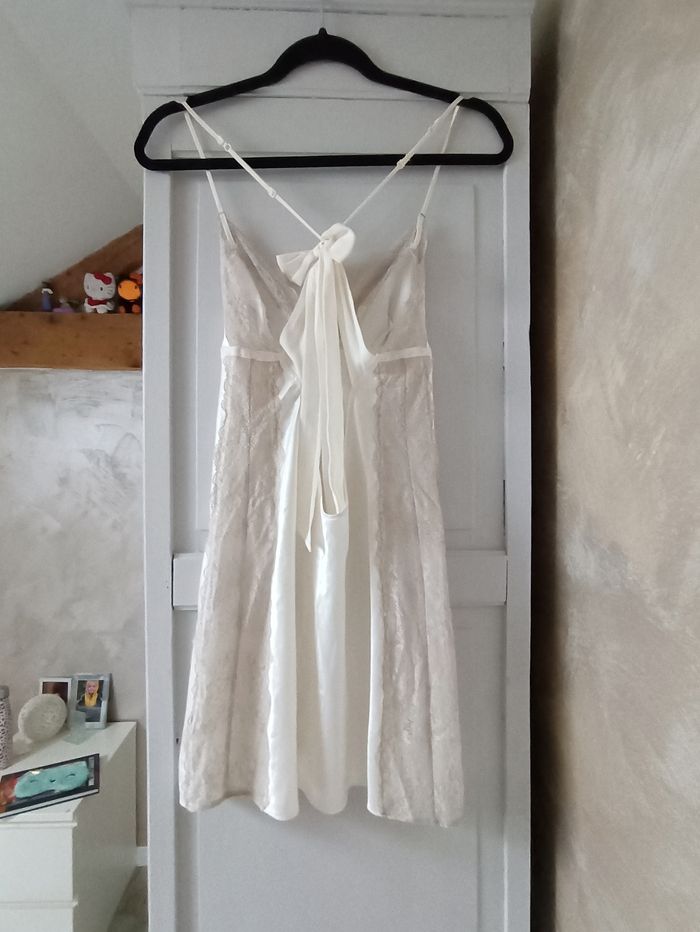 Nuisette en satin et dentelle Etam. Dos plongeant avec noeud en haut. Peu portée, en très bon état.