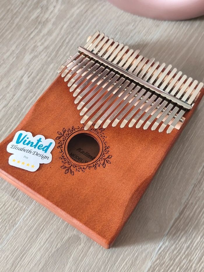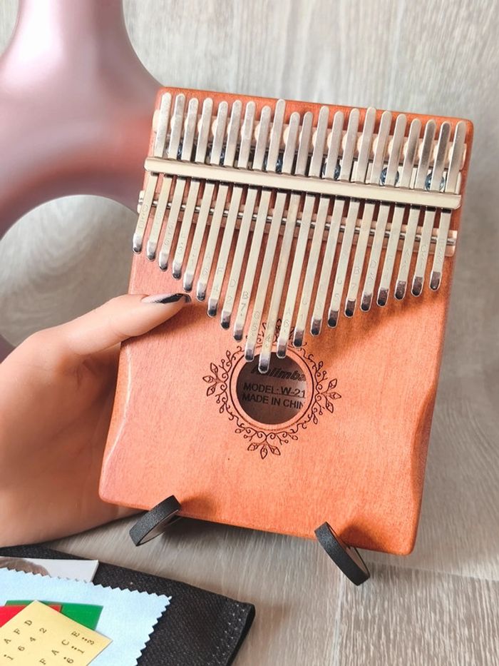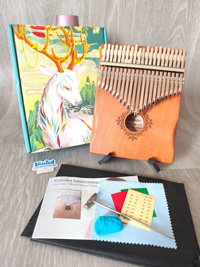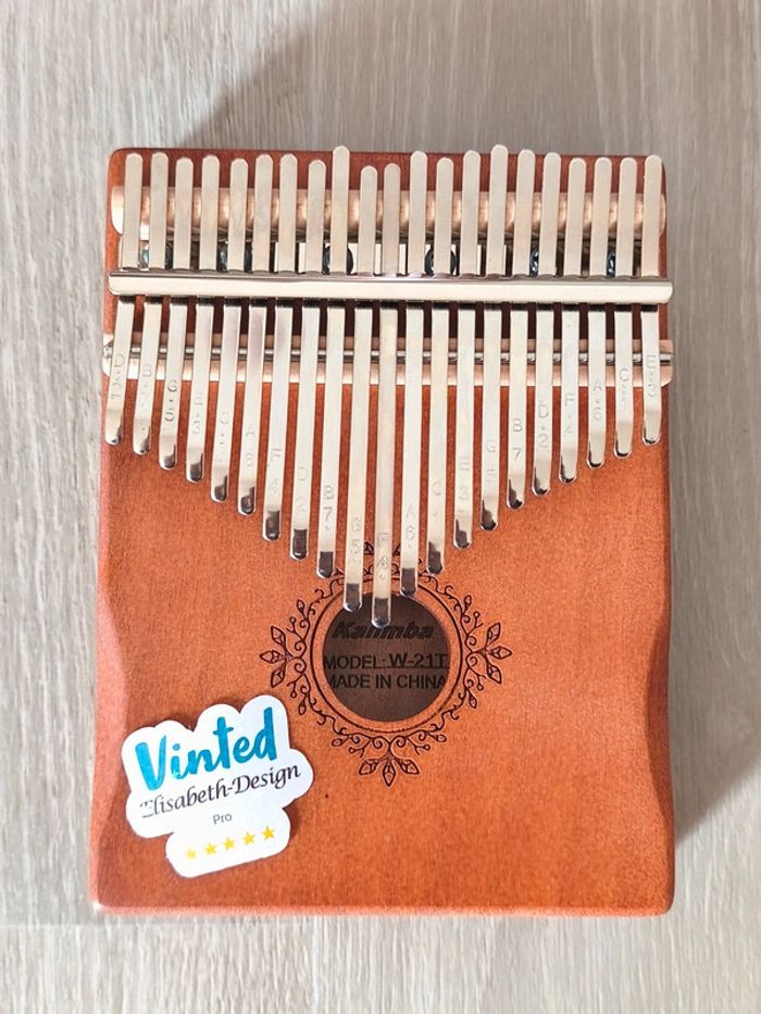 Coffret Kalimba 21 touches. Ce coffret comprend : 👉 1 Kalimba de 21 touches ( 14 x 18 x 3,5 cm ) 👉Un sac de rangement en tissu. 👉Un marteau d'accordage 👉Un chiffon de nettoyage 👉Un jeu de stickers à placer sur les lames pour faciliter la mémorisation 👉Un livret d'instructions et de partitions 👉Deux protections pour les pouces. Caractéristiques techniques du Kalimba de 21 Notes : 👉Type d'instrument : Percussion - Idiophone - Lamellophone 👉Nombre de Lames, Touches ou Notes : 21 👉Caisse de résonance : Oui 👉Matériaux : Corps en bois d'acajou massif, Lamelles en acier 👉Dimensions : 14 x 18 x 3,5 centimètres 👉Poids : 500 grammes 👉Tonalité : Fa majeur 📍Les Kalimbas de 21 Notes sont des Instruments de Musique destinés à celles et ceux qui veulent s'offrir plus de possibilités créatives qu'avec des modèles plus classiques de 15 ou 17 touches. 📍Cette large gamme de Notes de Musique vous permettra de réaliser des chansons. 📍Vendu sans le support de présentation. 👉Pour trouver d'autres instruments c'est par ici : 🔎#elisabethDesignMusique 📫⏳ Envoi rapide et soigné le jour même de l'achat dans la mesure du possible! 🤝 Frais de port ajusté au plus bas.