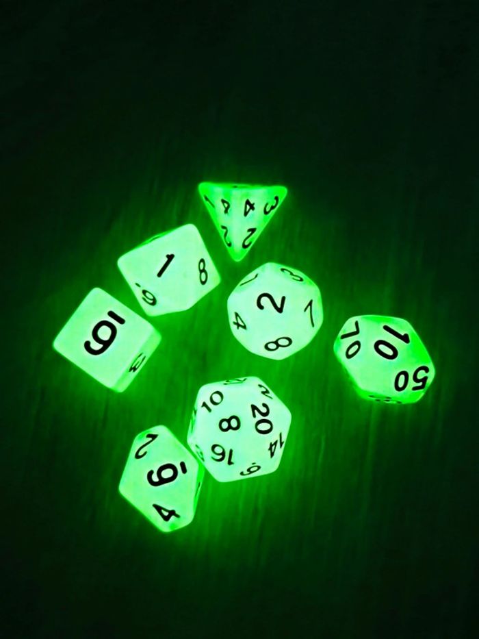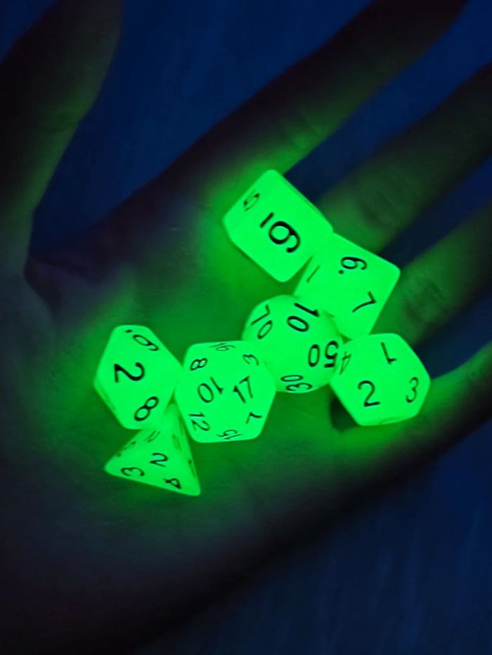 Lot de 7 dé polyédriques phosphorescents 🌈