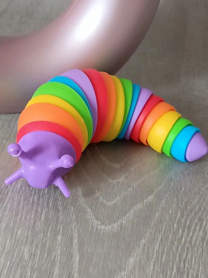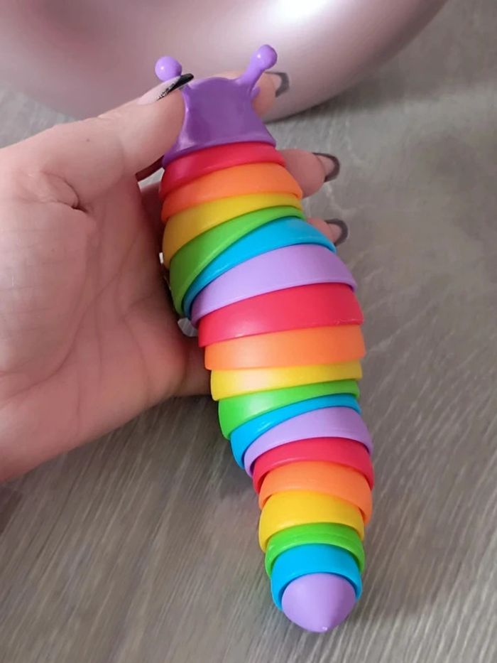 📍Limace articulée arc-en-ciel. 📍Tactile et amusante à manipuler, cette limace très flexible dans votre main et agréable à toucher. 📍Les sons légers qu'on entend quand on la manipule sont relaxants. 📍Cette limace est un jouet sensoriel qui permet de soulager l'anxiété, de se détendre... 📍Ce jouet peut être utilisé en toute sécurité par les enfants. Dimension : 15 à 19 cm 👉Pour trouver d'autres accessoires c'est par ici : 🔎#elisabethDesignAccessoireEnfant 📫⏳ Envoi rapide et soigné le jour même de l'achat dans la mesure du possible! 🤝 Frais de port ajusté au plus bas.