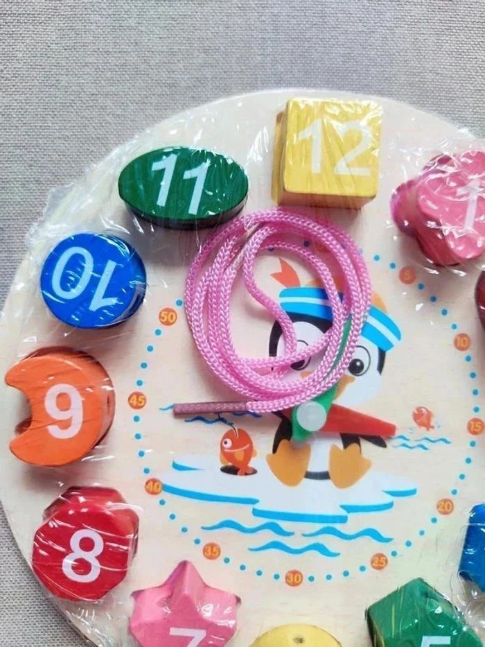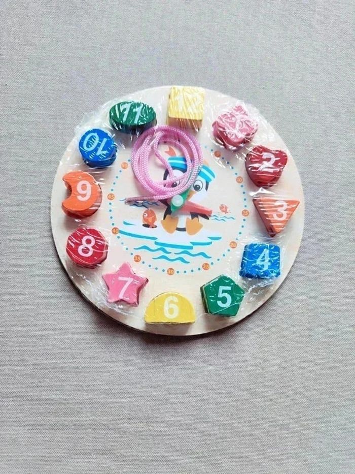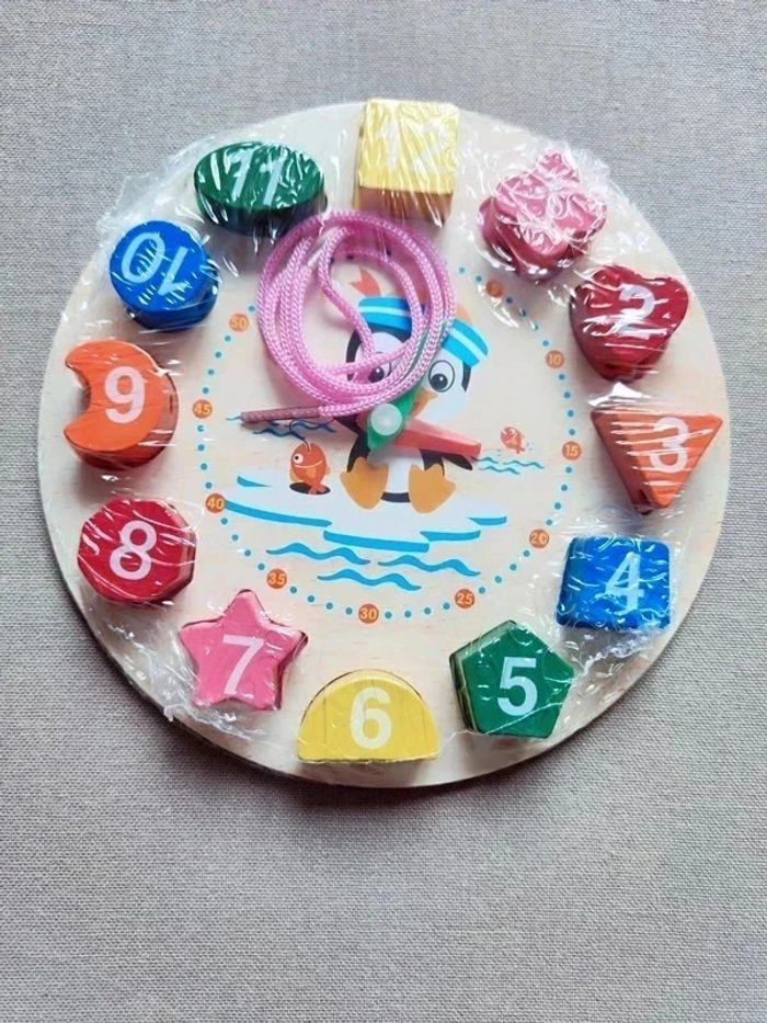 📍Une horloge d'apprentissage originale et colorée, où chaque chiffre correspond à une pièce à encastrer. 📍Grâce à elle, les enfants pourront se familiariser avec les chiffres, les formes, les couleurs puis avec un peu d'entraînement réussiront à déchiffrer l'heure de l'horloge ! 📍Les formes pourront également être enfilés comme des perles sur le lacet prévu. 👉Pour trouver d'autres activités c'est par ici : 🔎#elisabethdesignJeuenBois 📫⏳ Envoi rapide et soigné le jour même de l'achat dans la mesure du possible! 🤝 Frais de port ajusté au plus bas.