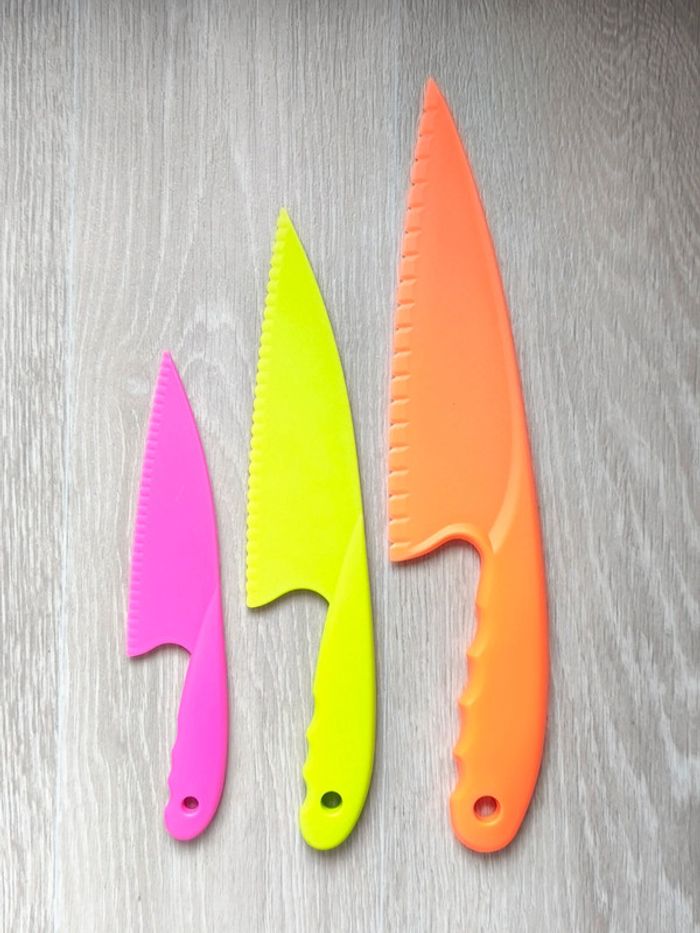 📍NEUF avec emballage. 📍Offrez à votre enfant la liberté de participer en cuisine avec vous de manière sûre et éducative avec cet ensemble de couteaux pour Enfant. 📍Coupe les aliments mais ne tranche pas la peau. 📍Apprentissage de la cuisine en famille. 📍Résistant aux chutes et aux chocs. 📍PLUS DE SÉCURITÉ : Ces couteaux adaptés aux enfants tranchent les aliments, mais ne coupe pas les doigts ! 📍ADAPTÉS : Trois tailles différentes pour s’adapter parfaitement à chaque âge. 📍COMPLET : Tout le nécessaire pour couper et façonner. 📍INDEPENDANCE : Augmente l’autonomie, développe la motricité fine et favorise la coordination main-oeil par l’apprentissage pratique de la cuisine. 📍Taille des 3 couteaux : -> 29 x 6 cm / 24 x 5 cm / 18 x 4 cm. 👉Pour trouver d'autres activités c'est par ici : 🔎#elisabethdesignCuisineEnfant 📫⏳ Envoi rapide et soigné le jour même de l'achat dans la mesure du possible! 🤝 Frais de port ajusté au plus bas.