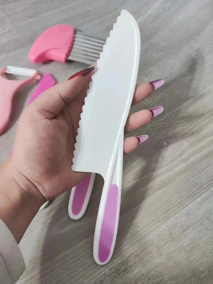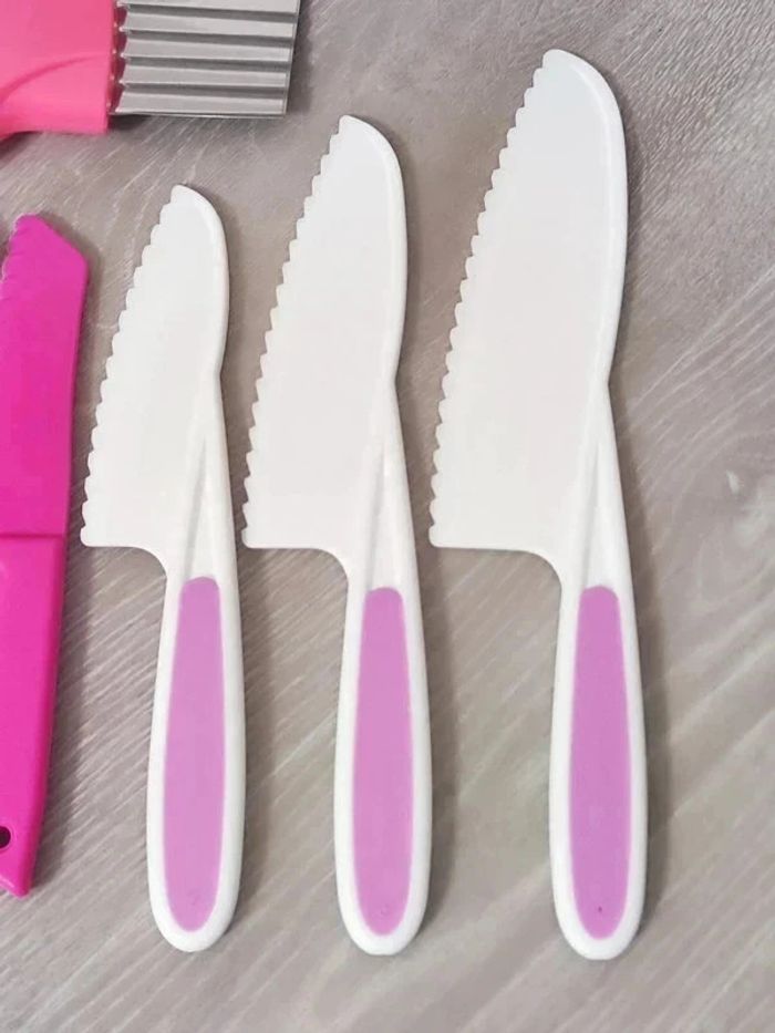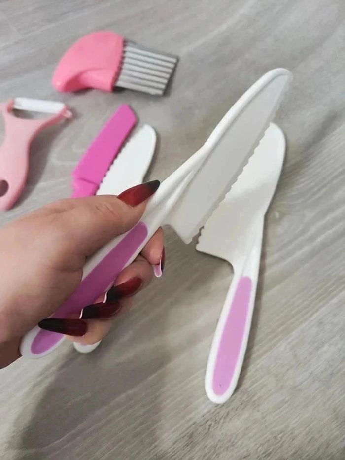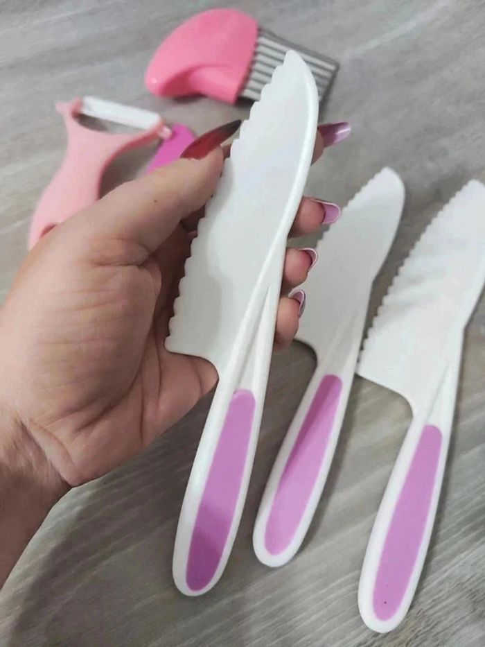 📍NEUF. 📍Offrez à votre enfant la liberté de participer en cuisine avec vous de manière sûre et éducative avec cet ensemble de couteaux pour Enfant. 📍Coupe les aliments mais ne tranche pas la peau. 📍Apprentissage de la cuisine en famille. 📍Résistant aux chutes et aux chocs. 📍PLUS DE SÉCURITÉ : Ces couteaux adaptés aux enfants tranchent les aliments, mais ne coupe pas les doigts ! 📍ADAPTÉS : Trois tailles différentes pour s’adapter parfaitement à chaque âge et un couteau de paume en bois pour les tout-petits. 📍COMPLET : Tout le nécessaire pour couper, éplucher et façonner. 📍INDEPENDANCE : Augmente l’autonomie, développe la motricité fine et favorise la coordination main-oeil par l’apprentissage pratique de la cuisine. 📍Taille des 4 couteaux : -> 27,5 x 5 cm / 24,5 x 5 cm / 22 x 4 cm / 19,5 x 3 cm. 👉Pour trouver d'autres activités c'est par ici : 🔎#elisabethdesignCuisineEnfant 📫⏳ Envoi rapide et soigné le jour même de l'achat dans la mesure du possible! 🤝 Frais de port ajusté au plus bas.