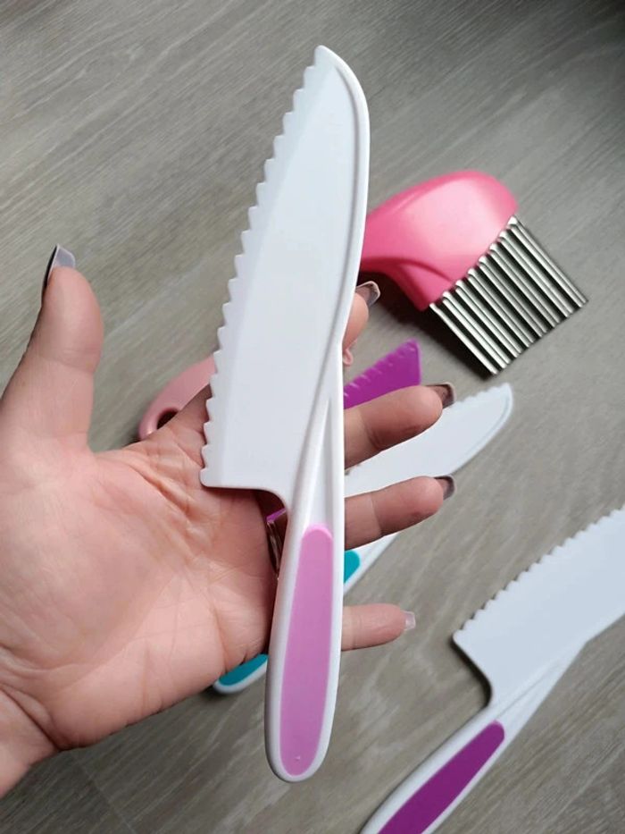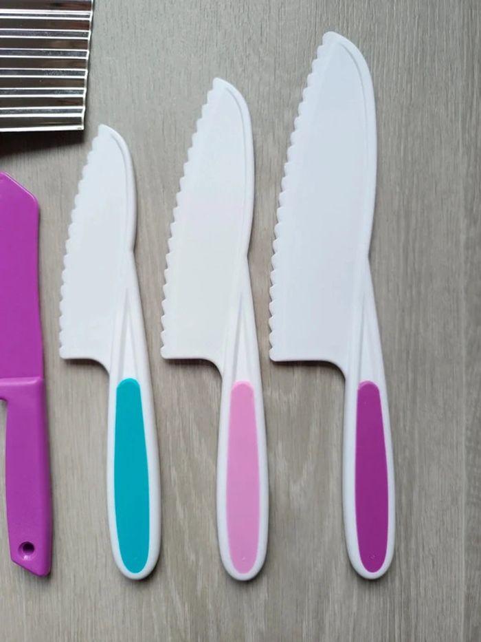 📍NEUF avec emballage. 📍Offrez à votre enfant la liberté de participer en cuisine avec vous de manière sûre et éducative avec cet ensemble de couteaux pour Enfant. 📍Coupe les aliments mais ne tranche pas la peau. 📍Apprentissage de la cuisine en famille. 📍Résistant aux chutes et aux chocs. 📍PLUS DE SÉCURITÉ : Ces couteaux adaptés aux enfants tranchent les aliments, mais ne coupe pas les doigts ! 📍ADAPTÉS : Trois tailles différentes pour s’adapter parfaitement à chaque âge et un couteau de paume en bois pour les tout-petits. 📍COMPLET : Tout le nécessaire pour couper, éplucher et façonner. 📍INDEPENDANCE : Augmente l’autonomie, développe la motricité fine et favorise la coordination main-oeil par l’apprentissage pratique de la cuisine. 📍Taille des 4 couteaux : -> 27,5 x 5 cm / 24,5 x 5 cm / 22 x 4 cm / 19,5 x 3 cm. 👉Pour trouver d'autres activités c'est par ici : 🔎#elisabethdesignCuisineEnfant 📫⏳ Envoi rapide et soigné le jour même de l'achat dans la mesure du possible! 🤝 Frais de port ajusté au plus bas. Dispo 1.