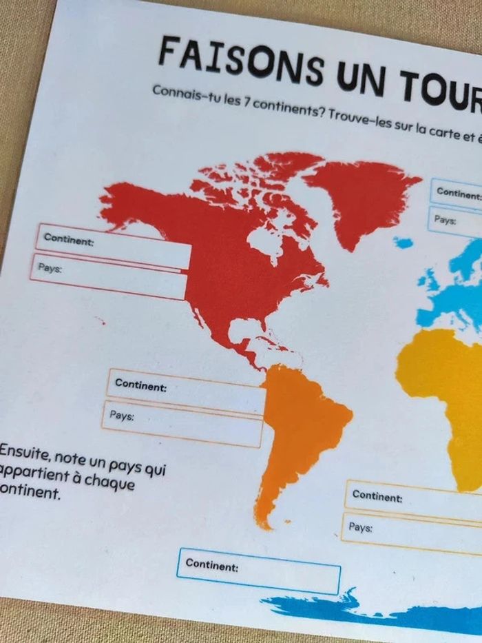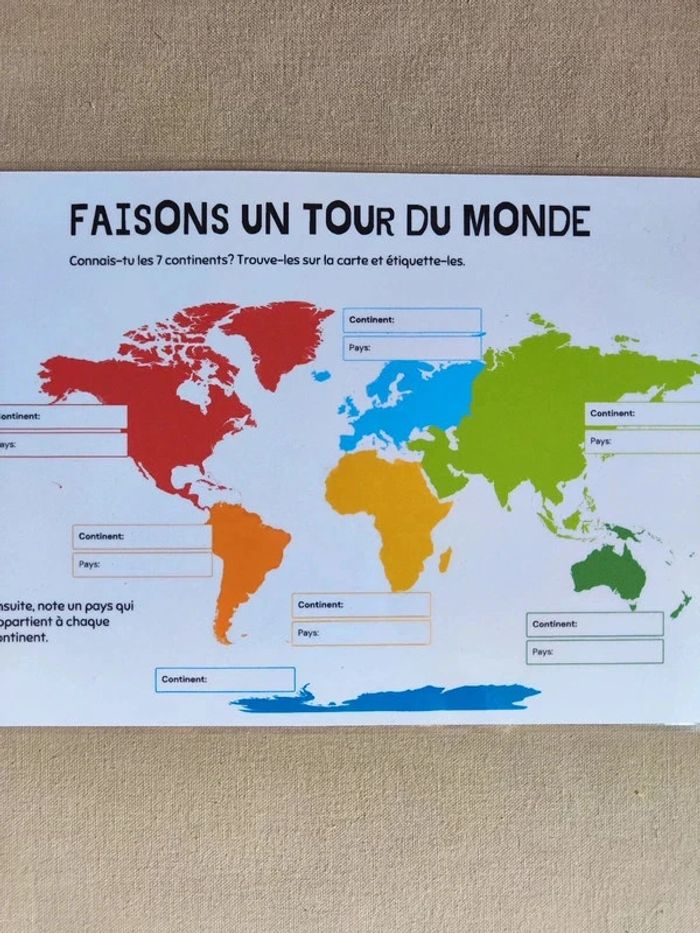 📍Carte du monde à remplir au feutre effaçable. 📍Papier 250G, plastifié pour une bonne tenue ! 📍Taille : A4 📍Neuf. 👉Pour trouver d'autres activités c'est par ici : 🔎#elisabethdesignDécouverteduMonde 📫⏳ Envoi rapide et soigné le jour même de l'achat dans la mesure du possible! 🤝 Frais de port ajusté au plus bas.