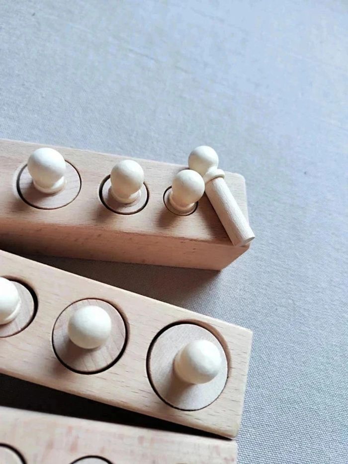 📍Ensemble neuf, vendu dans son emballage. 👉Emboîtements Cylindriques : 4 blocs 📍Cet ensemble contient quatre blocs de cylindres de hauteur et/ou de diamètre variables. 📍Fabriqué en bois dur massif. Objectifs : 📍Développement de l'acuité visuelle (dimensions, perception). 📍Développement/enrichissement du langage avec les termes adéquats : petit/grand, épais/fin, hauteur/largeur. 📍Développement de la concentration notamment grâce à l'auto correction (si le cylindre ne rentre pas c'est qu'il n'est pas au bon endroit : l'activité continue) 📍Développement de la préhension - préparation à l'écriture par la tenue des cylindres à l'aide des 3 doigts scripteurs par le bouton. 📍Coordination œil- main 📍Les emboîtements cylindriques peuvent être proposés vers 2 ans et demi. 👉Pour trouver d'autres activités c'est par ici : 🔎#elisabethdesignSensoriel 📫⏳ Envoi rapide et soigné le jour même de l'achat dans la mesure du possible! 🤝 Frais de port ajusté au plus bas.