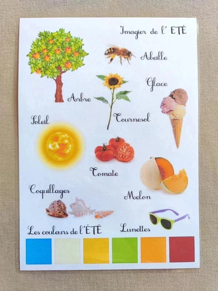 📍Imagier de l'été. 📍Format A4. 📍Papier 250G plastifié pour une bonne tenue ! 📍Neuf. 👉Pour trouver d'autres activités c'est par ici : 🔎#elisabethdesignSaison 📫⏳ Envoi rapide et soigné le jour même de l'achat dans la mesure du possible! 🤝 Frais de port ajusté au plus bas. Ref: 8#-Affiche-A4