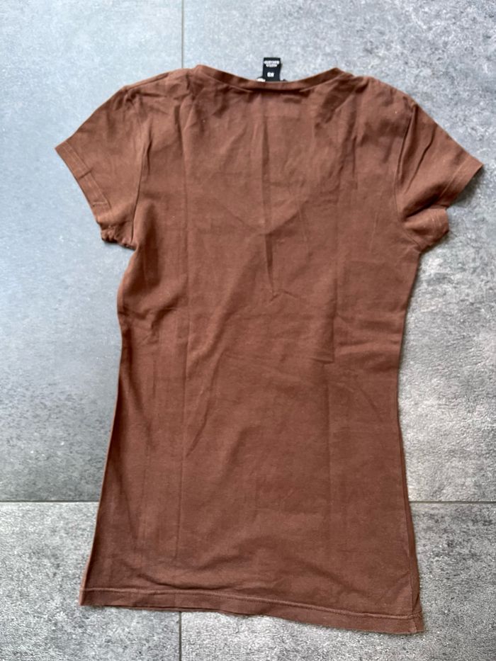 T-shirt manches courtes col V Marque H&M, taille XS, coloris marron