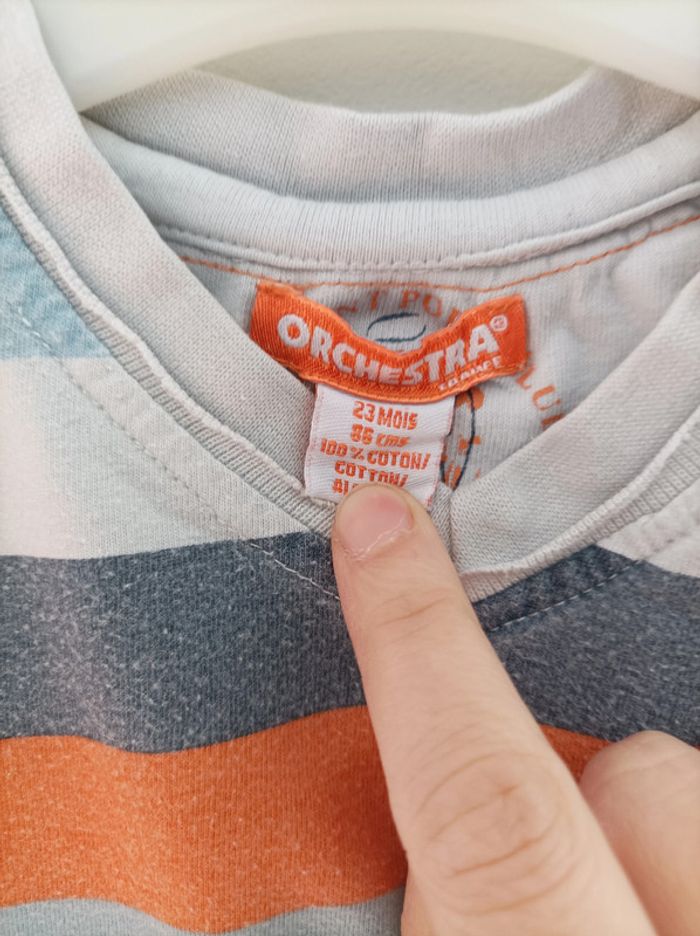 t-shirt manches courtes orchestra orange, blanc et bleu 2ans - photo numéro 2