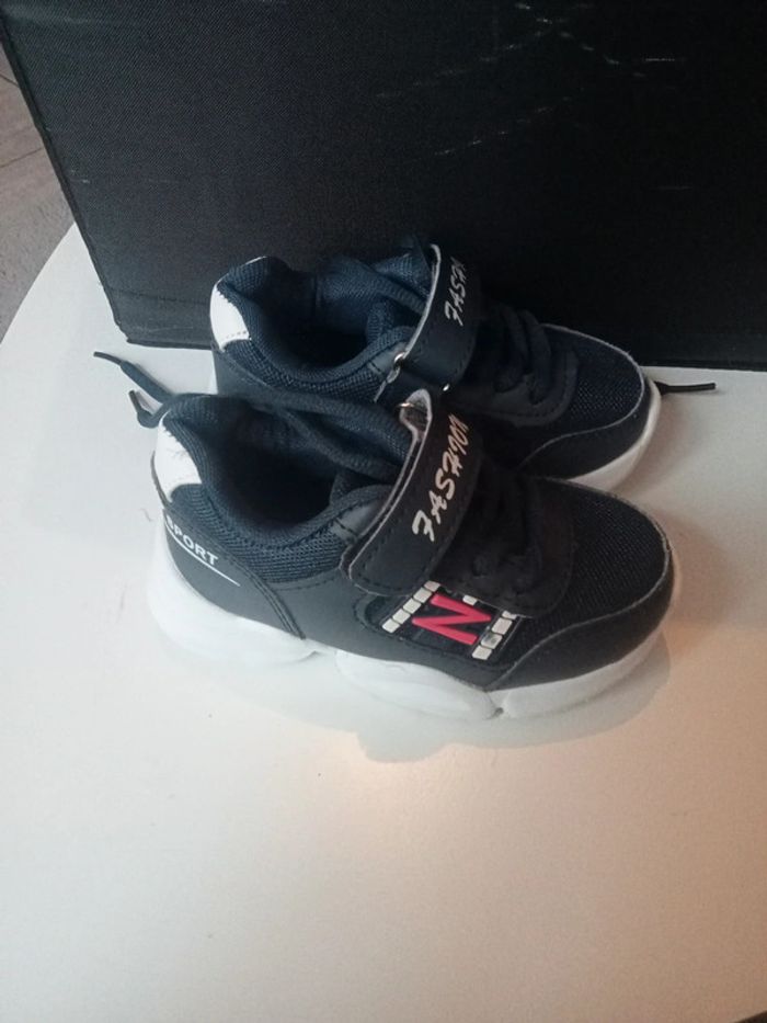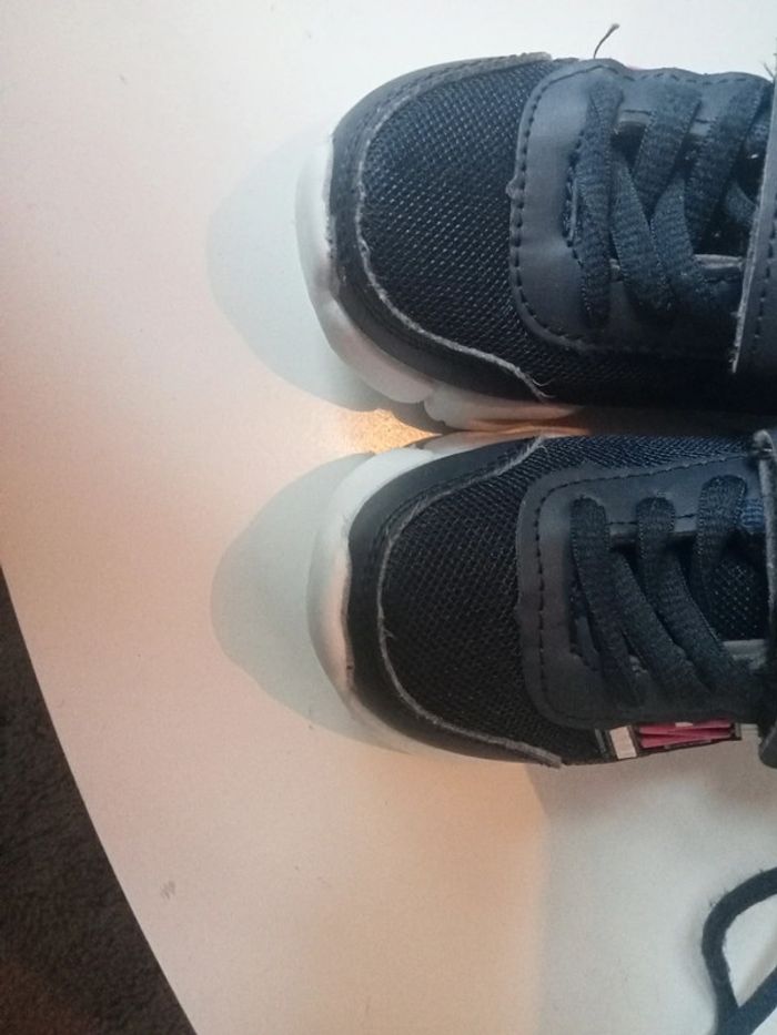 Basket Couleur bleu marine et blanche Un peu de rose. Taille 25 Quelques traces d'usures.