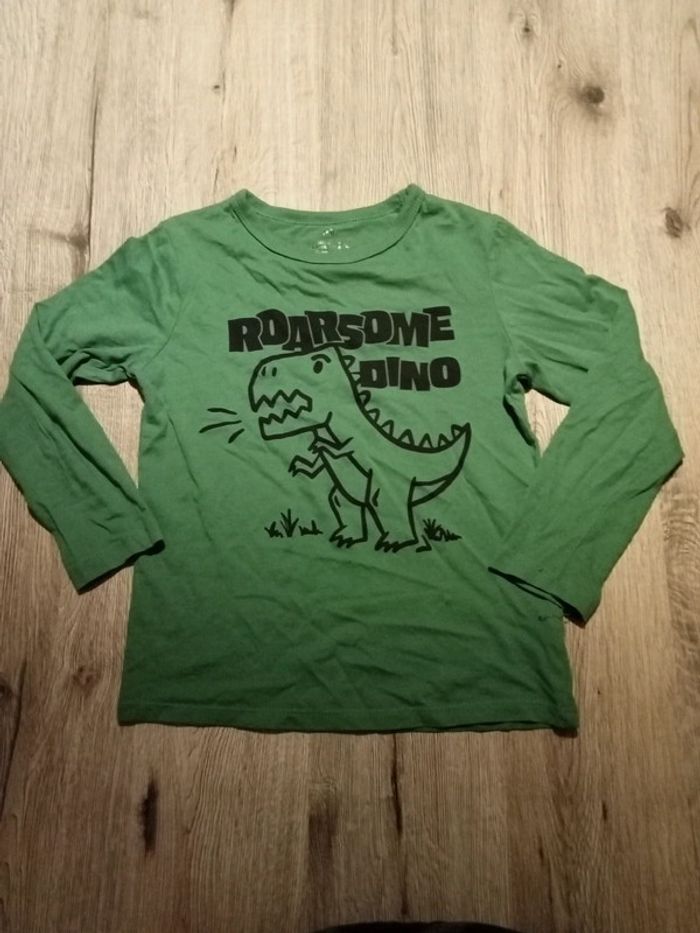 T shirt manches longues dinosaure couleur vert. H&M Taille 110-116 Très peu porté très bon état.