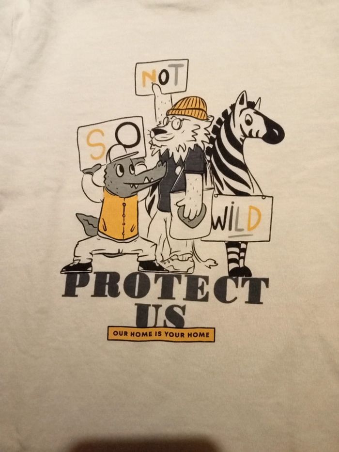 Polo blanc motif animaux. Kiabi. Taille 5 ans