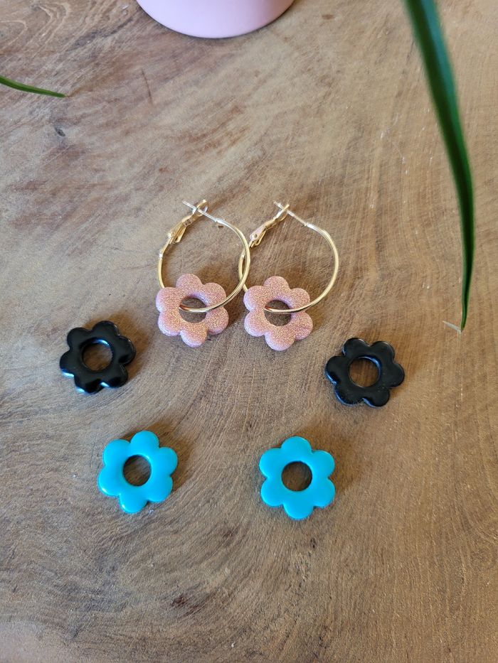 Boucles d'oreilles créoles avec 3 paires de Marguerites