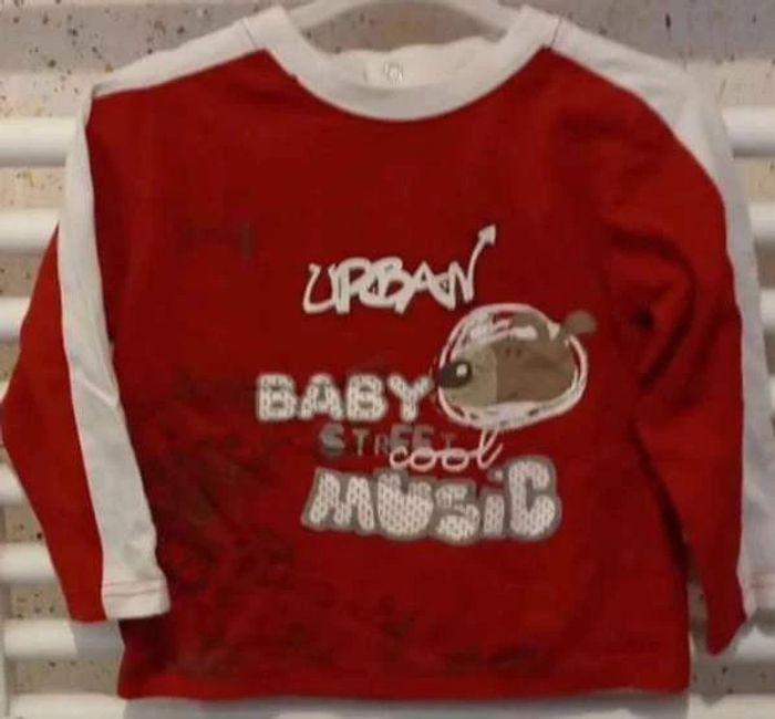 Tee shirt manche longue rouge blanc imprimé Taille 18 mois #sycaro35 #sycaro3518mois #taille18mois #teeshirt #manchelongue #rouge #blanc A1356
