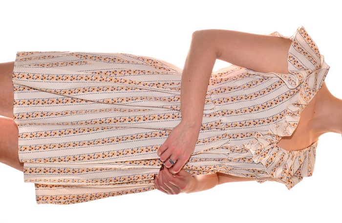 robe d'été blanche motifs florale taille S romantique col v manches courtes volantes élastiquée - photo numéro 1