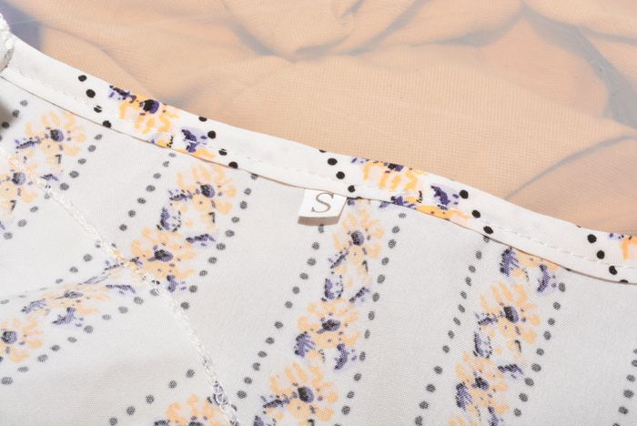 robe d'été blanche motifs florale taille S romantique col v manches courtes volantes élastiquée - photo numéro 4
