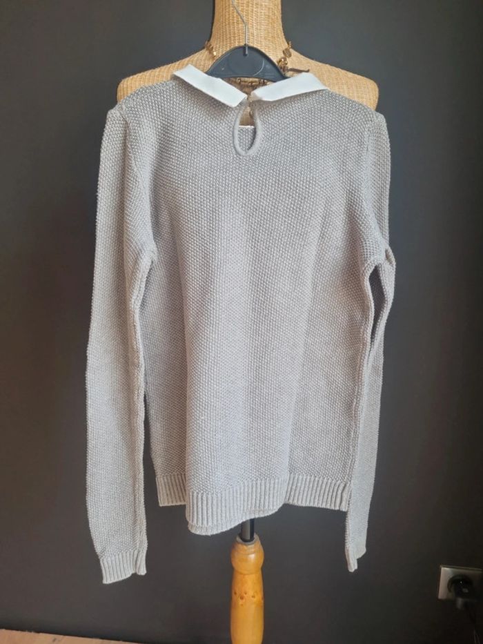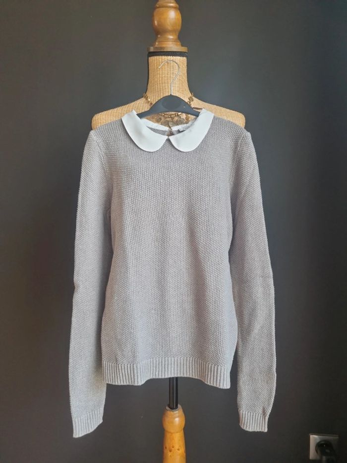 Pull léger gris Col Claudine blanc Pimkie Taille XS En très bon état
