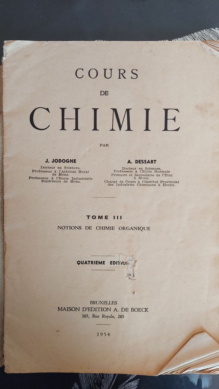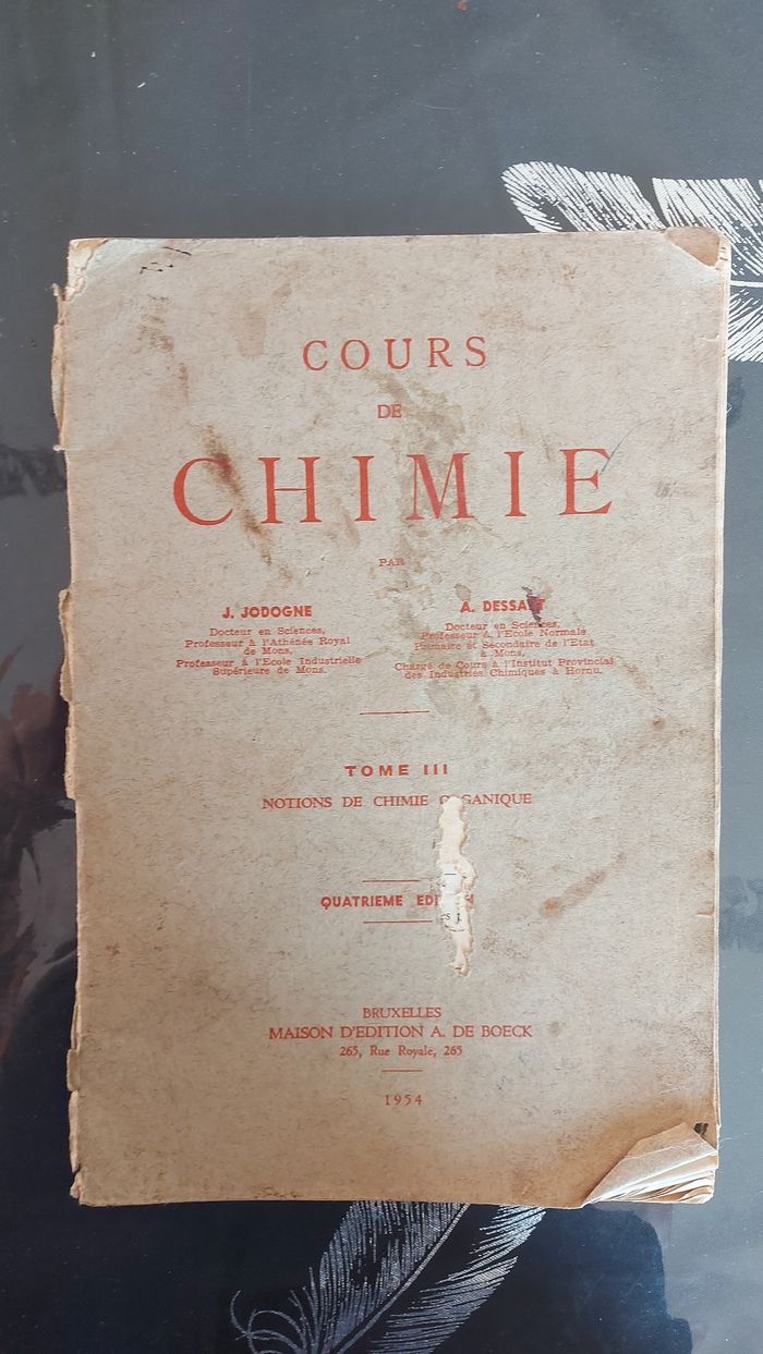 Vieux livre de chimie 1954 Fort abîmé