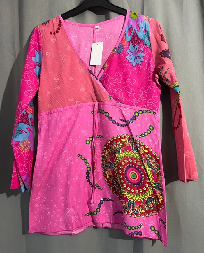 Tunique blouse ethnique été taille S/M rose femme neuve et étiqueté - photo numéro 1