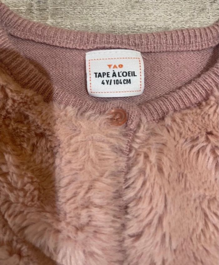Gilet chaud tape à l’œil 4 ans rose très bon état tout doux sur le devant - photo numéro 3