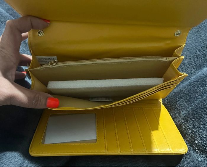 Grand porte feuille / monnaie moutarde et paillettes à bandoulière neuf - photo numéro 7