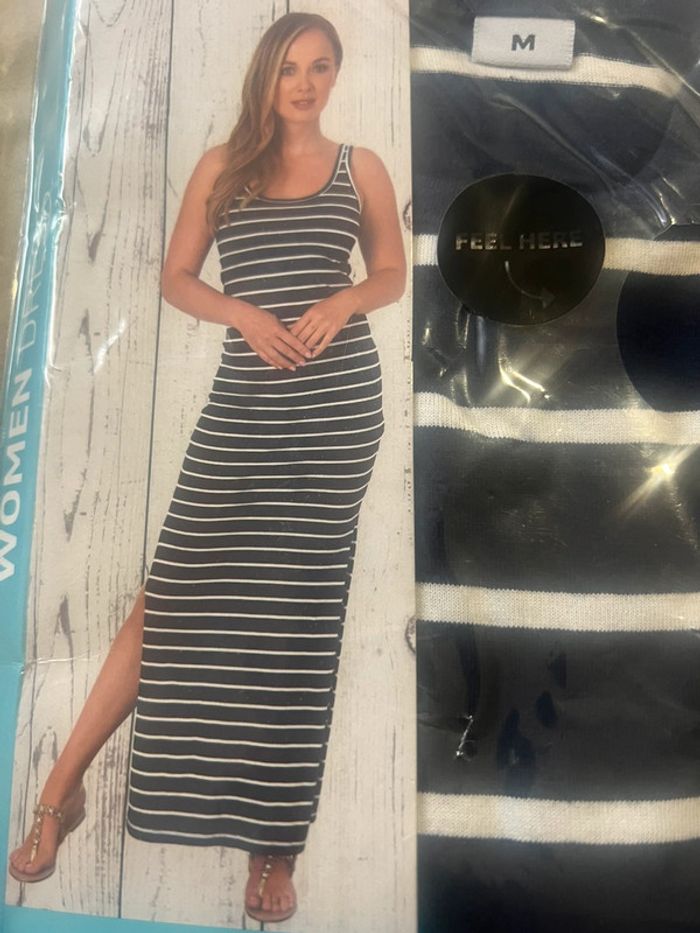 Robe de plage détente fendu sur le côté taille M neuve couleur bleu foncée et blanche - photo numéro 1