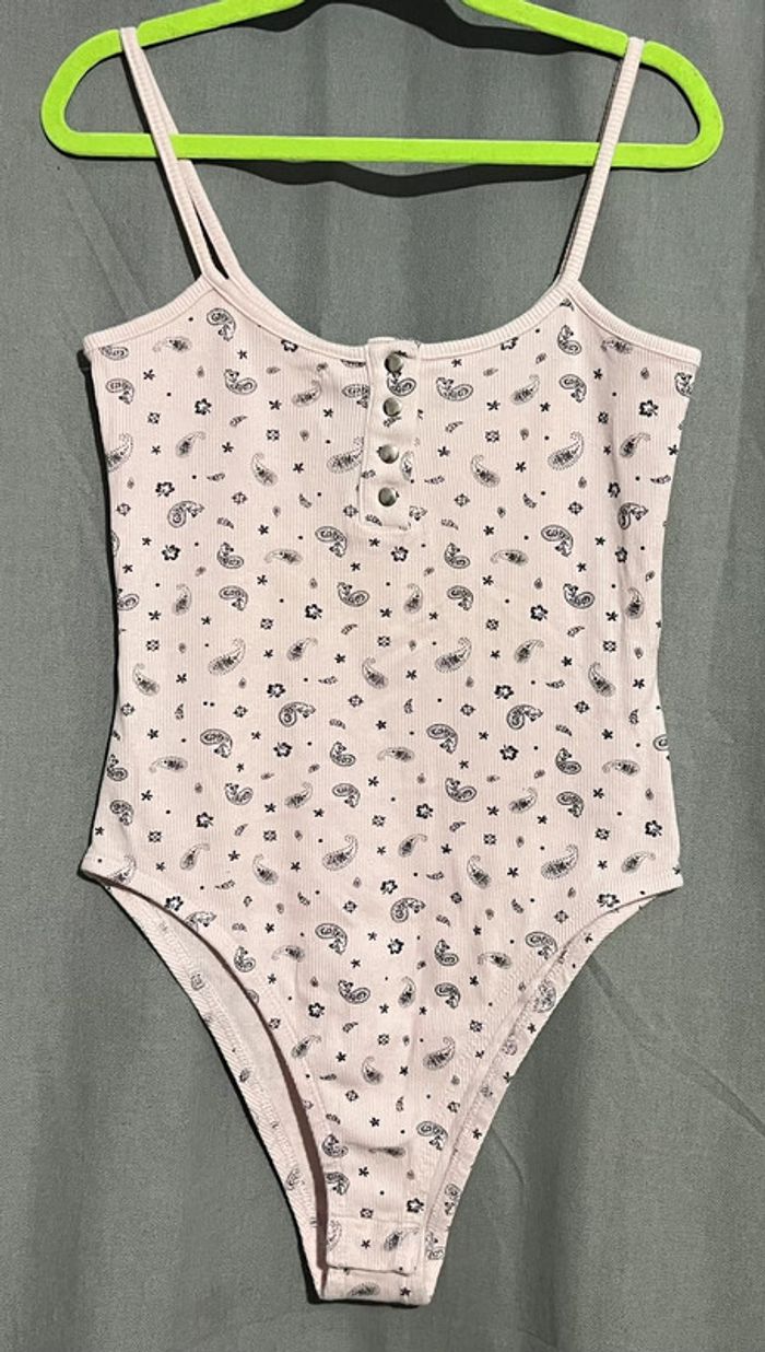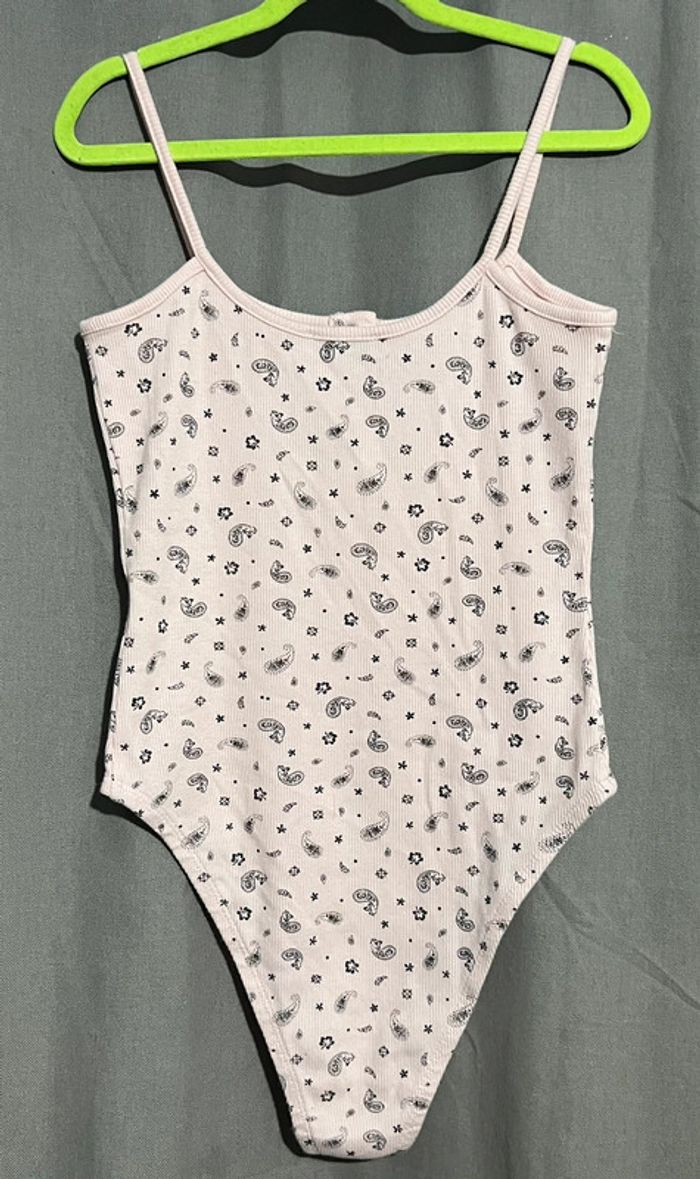 Body femme fine bretelle taille S jennyfer très peu porté couleur rose clair , motif noir