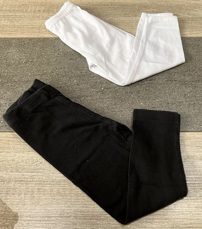 Lot de 4 vêtements 2 ans 24 mois très bon état comprenant : - un legging noir 24 mois kiabi - un legging blanc 2 ans sans marque - un short 24 mois gémo - et une jupe neuve 26 mois