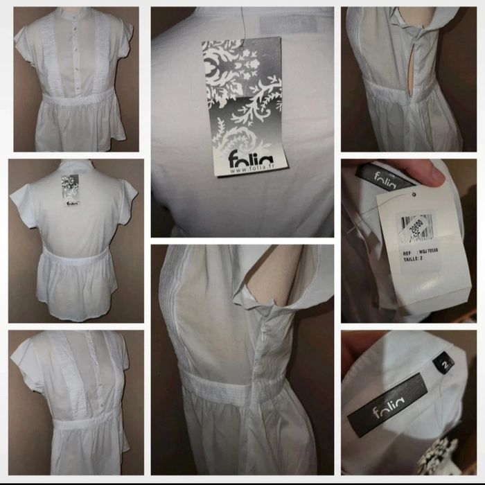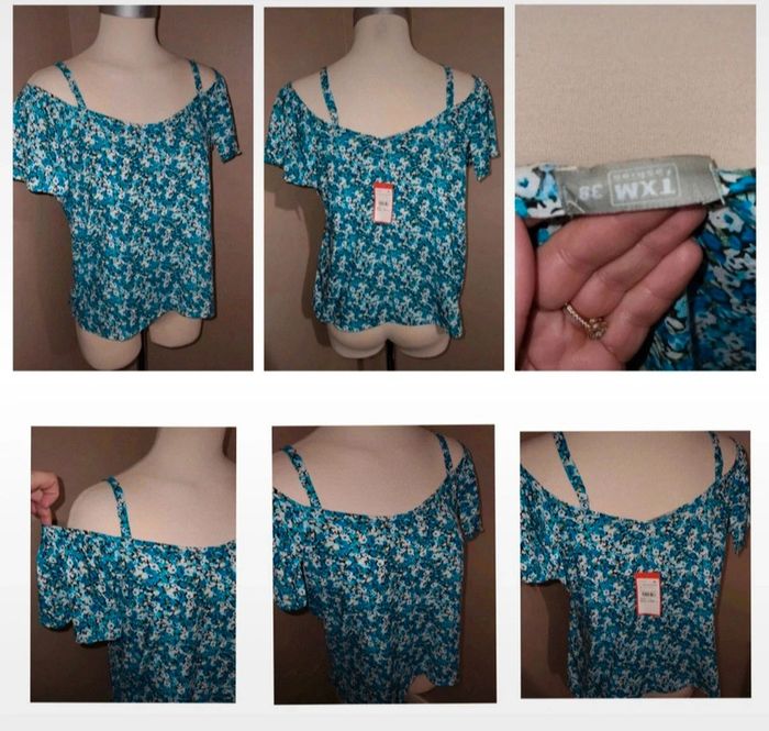 Lot de 5 Tee-shirts et Blouses dont 3 neuves Tee-shirt taille 38 de la marque Bershka Blouse blanche jamais portée marque folia taille 2 Ouverture fermeture éclair sur le côté prix d'achat 20€ Blouse épaules nues taille M de la marque papillonne , jamais porté Tee-shirt bleu fleurie épaules nues . Jamais porté neuf Taille M de la maque TXM Tee-shirt avec épaule dénudées taille 38 de la marque cache-cache #A2life_taille38