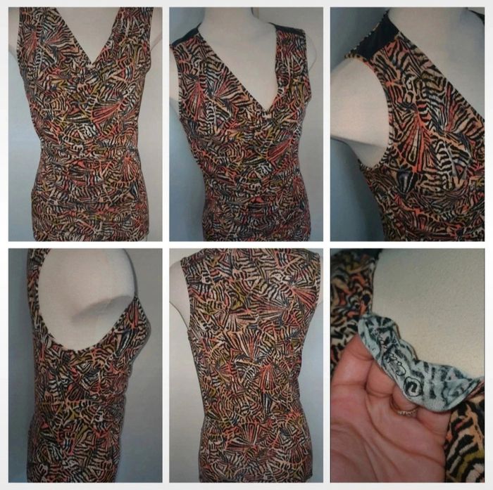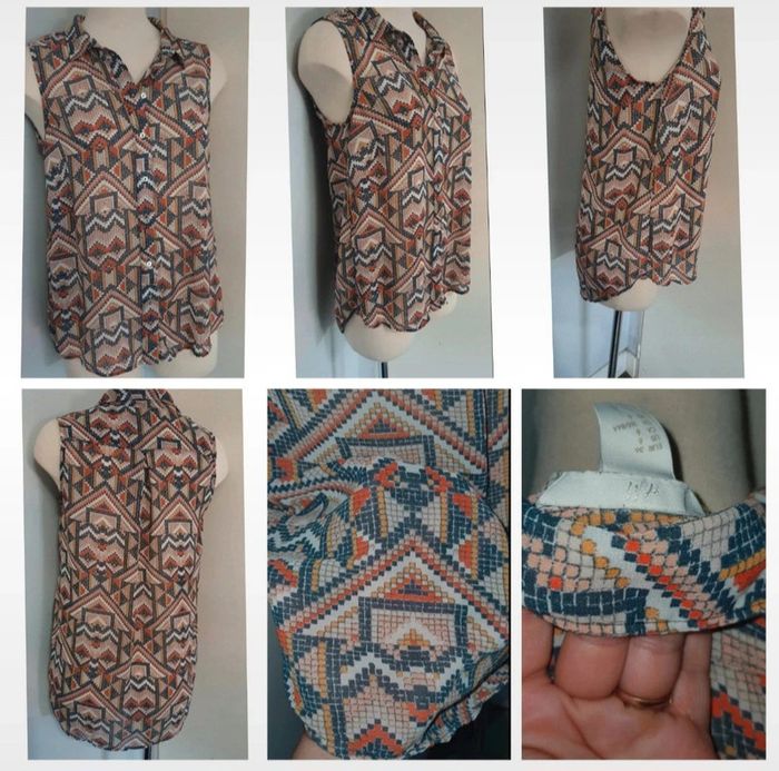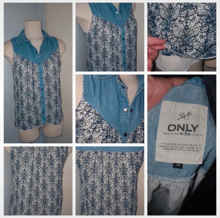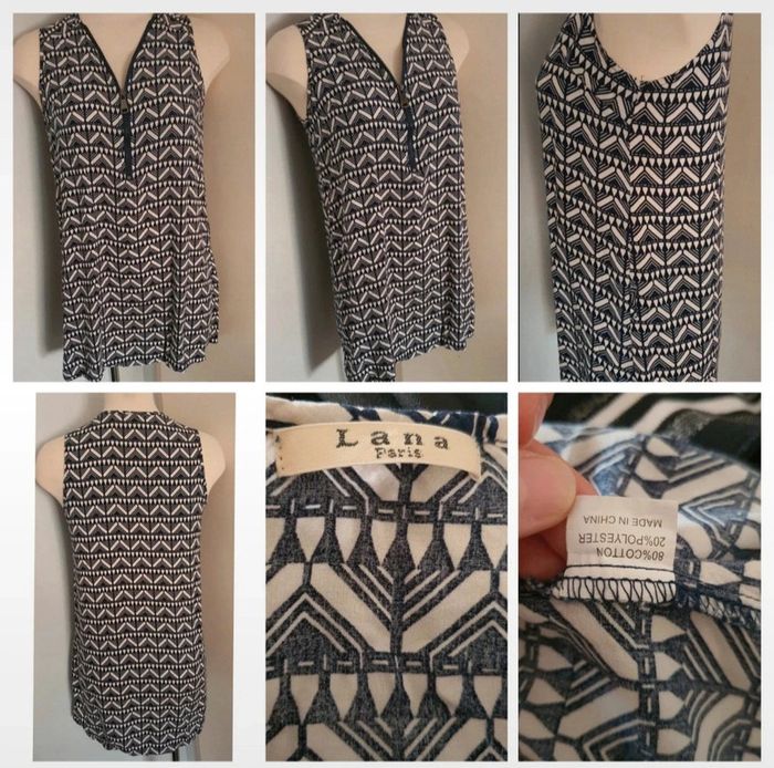 Tunique sans manches, tissus souple. taille 1 de la marque Lana Paris. Fermeture éclair à la poitrine Chemise légère sans manches , taille 34 peut aussi correspondre a un petit 36 , façon jeans et tissus léger doublé avec un autre tissus fin blanc . Tee-shirt moitié du dos nu . Marque la redoute taille 34/36 Débardeur léger H&M taille S Débardeur taille 36 de la marque collection U #A2life_taille36 #A2life_taille34