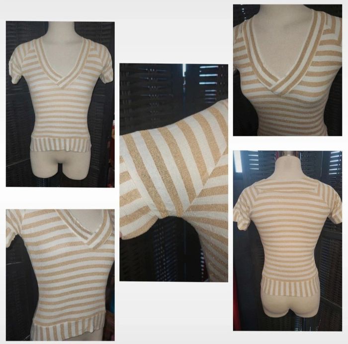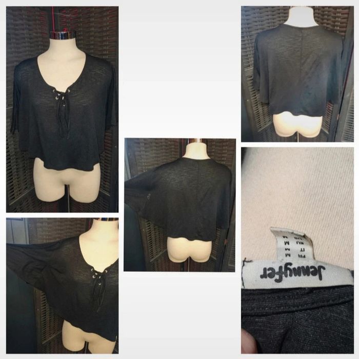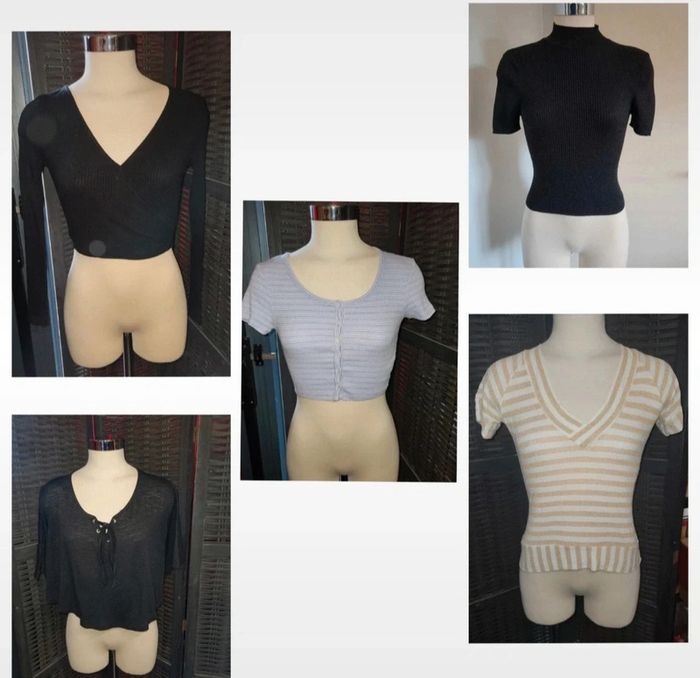 Lot de 5 Tee-shirt court 38 ,12€50 le lot ce qui fait 2.5€ l'unité . Tee-shirt près du corp , pailleté or , il n'y a plus l'étiquette taille mais correspond à une taille 38 . T-shirt en maille côtelé taille M Noir pailleté Très bon état Top court de la marque pacific République taille 38 . Haut court manches chauve-souris marque Jennyfer taille 38 . Top court asos taille 38 manches longues #A2life_taille38