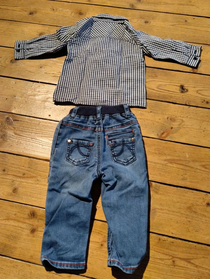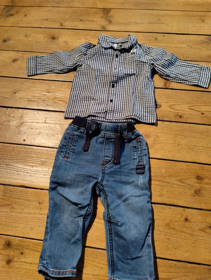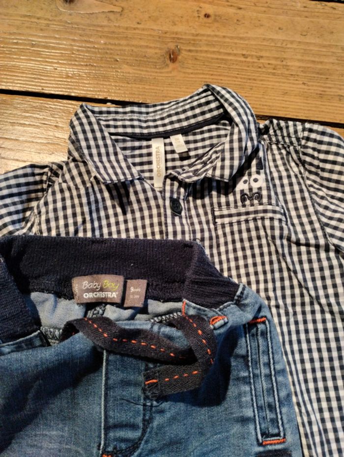 Orchestra 9 mois, 71 cm. Chemise a carreaux bleu marine et blanc Pantalon taille élastique et cordon a nouer.