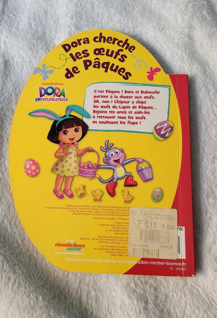 C'est Pâques ! Dora et Babouche sont prêts pour la grande chasse aux oeufs... mais Chipeur les a tous chipés ! Dora et Babouche retrouveront-ils les oeufs du Lapin de Pâques ? Avec plus de 20 flaps, l'enfant s'amuse à chercher les oeufs avec Dora, son héroïne préférée. Un des flaps est déchiré et donc manquant voir avant dernière photo Tranche du livre un peu abîmée #livrestattoogirl_3