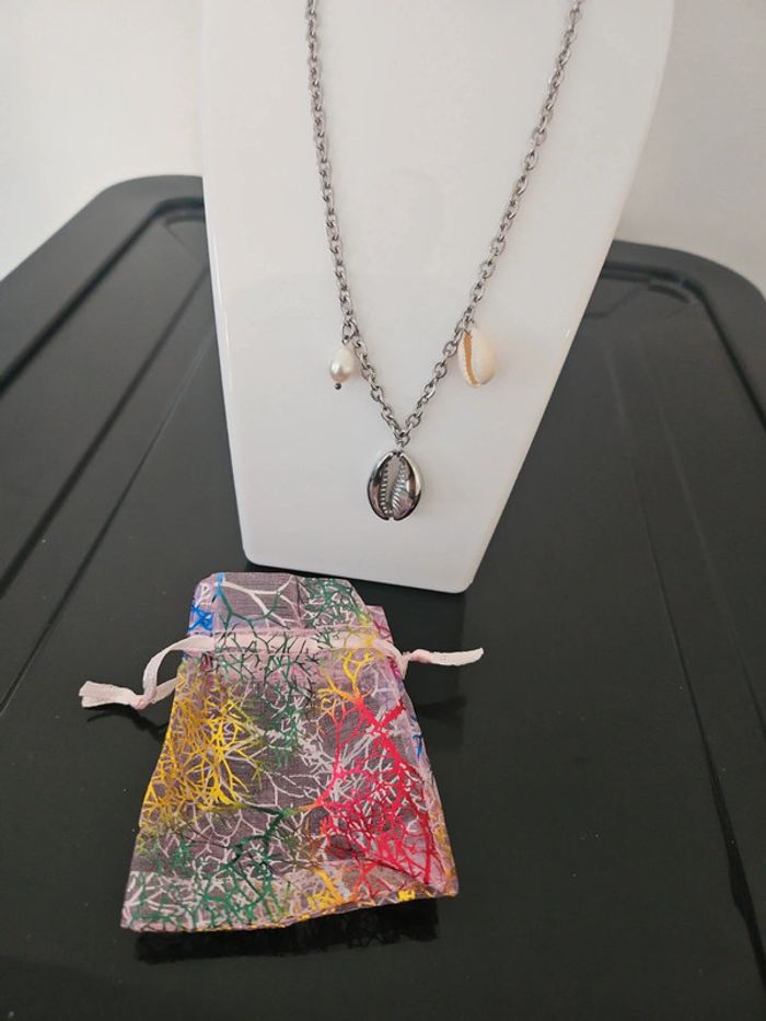 ®️ Marque: Moa 🎨 Colories: Argenté 🌻 Thème/motif: Coquillage 💐 Détails supplémentaires: Collier jamais porté. Vendu avec un pochon en tissus. Le support n'est pas à vendre. Envoi soigné et protégé