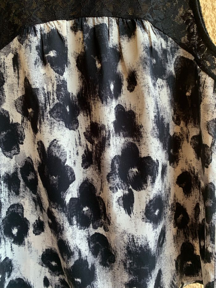 95% polyester 5% élastanne D’aisselles à aisselles : 48 cm Longueur : 62 cm N’a plus d’étiquette de taille ni de marque Envoi rapide et soigné