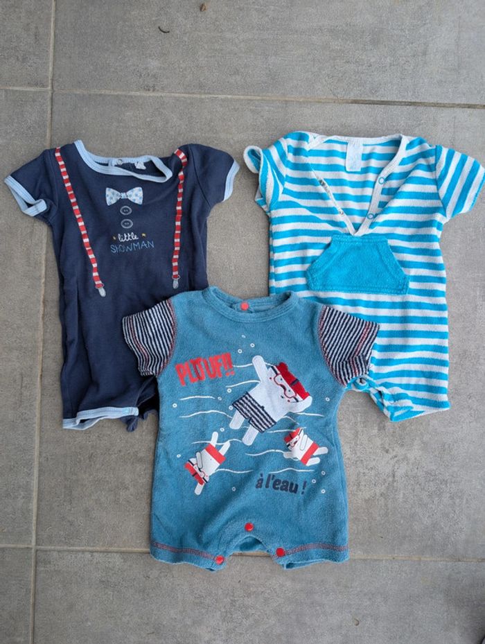 Lot 3 barboteuses / combi-short garçon 3 mois