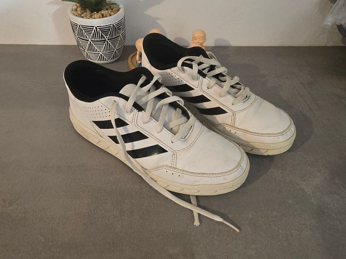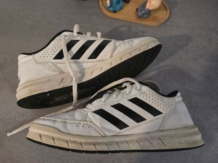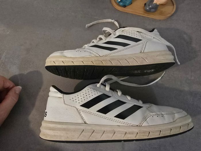 Bonjour 👋 Je vend cette : 👉paire de basckette addidas p36 Blanche on ete porter Maison 🏠 non fumeur et sans animaux