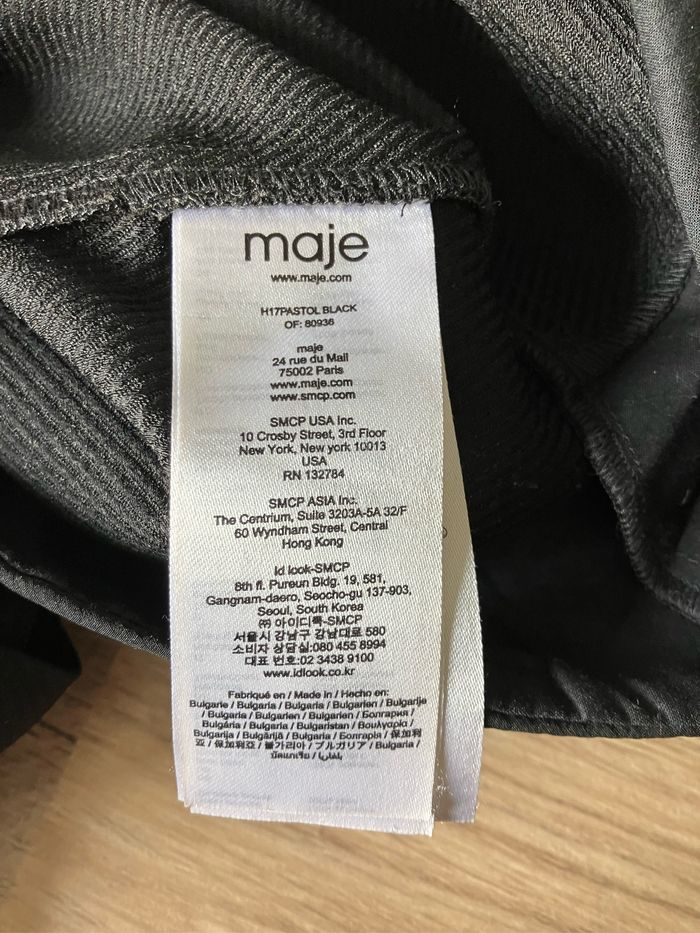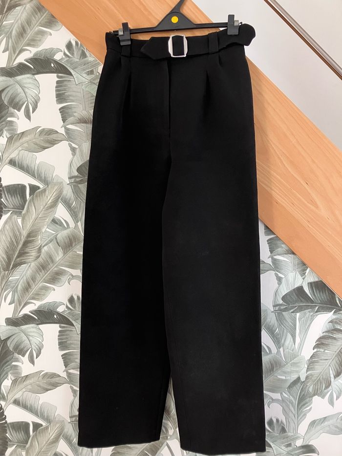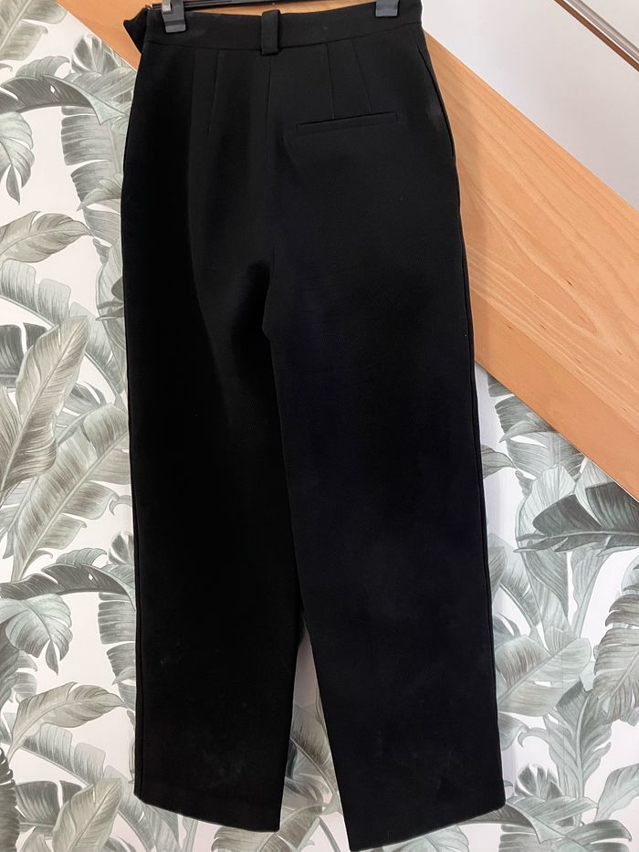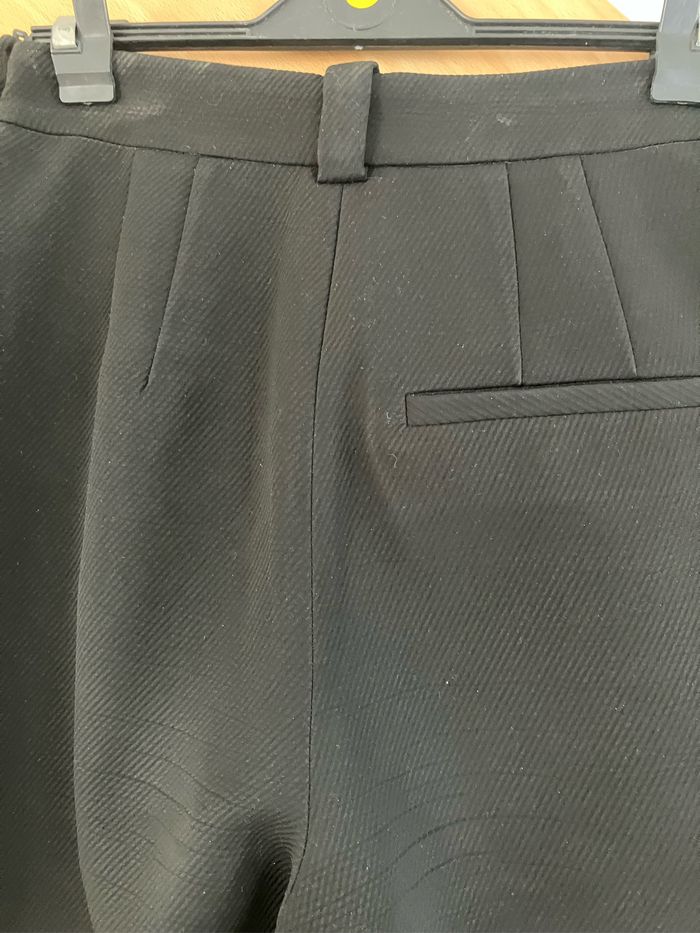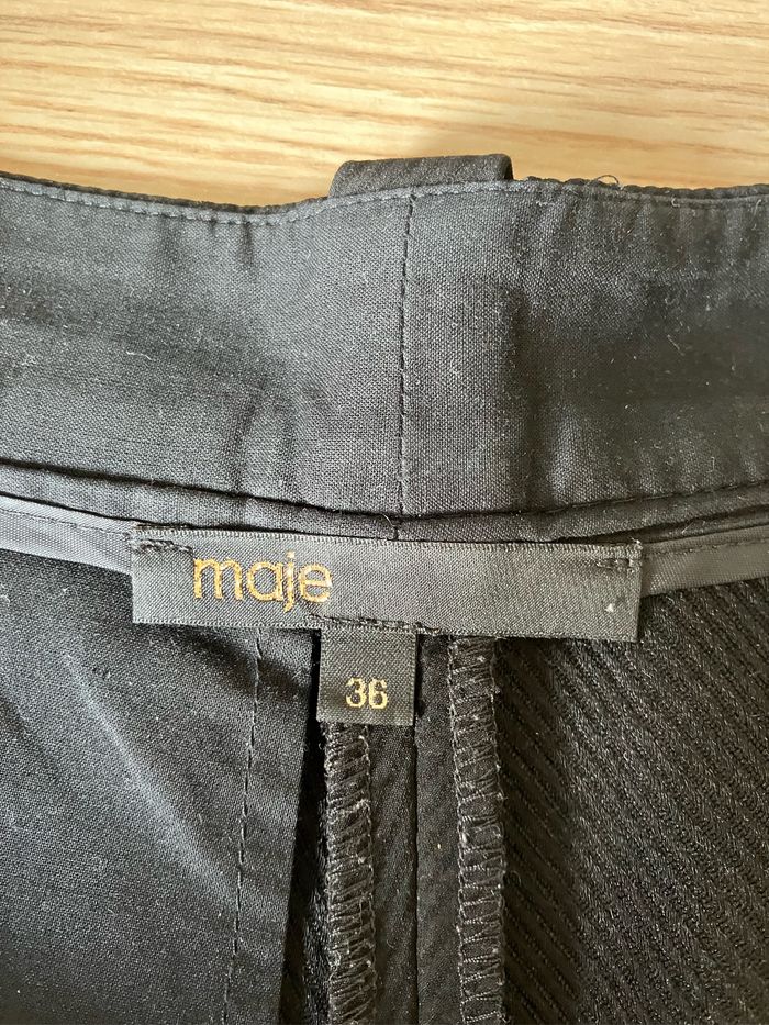 Très beau pantalon noir de la marque MAJE, taille 36. En bon état: il a été peu porté. Comporte une ceinture intégrée avec une boucle argentée. 2 poches + une fausse poche à l’arrière En polyester, tissu assez épais. Dimensions : - largeur de la jambe au niveau de l’entrejambe : 30 cm - Largeur de la jambe au niveau du bas : 22 cm - Longueur de la jambe de la taille au bas du pantalon : 101 cm Pas de photo porté.